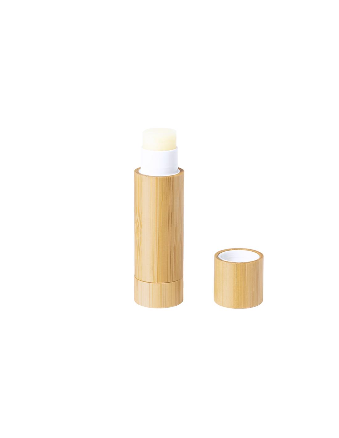 Bálsamo labial de línea nature, con aroma vainilla y protección SPF15. En envase dosificador de bambú con capucha.