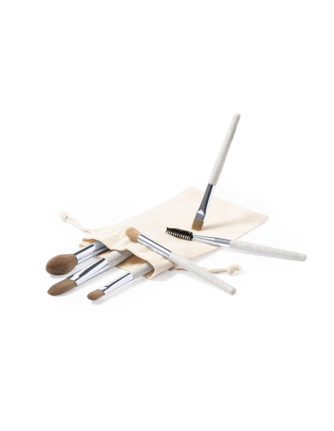 Set de brochas de maquillaje, con 6 brochas para diferentes usos incluidas. Fabricadas en caña de trigo, para así fomentar la utilización de materias primas naturales y reducir las emisiones contaminantes. Set presentado en funda de algodón 100%, con cordón de cierre.