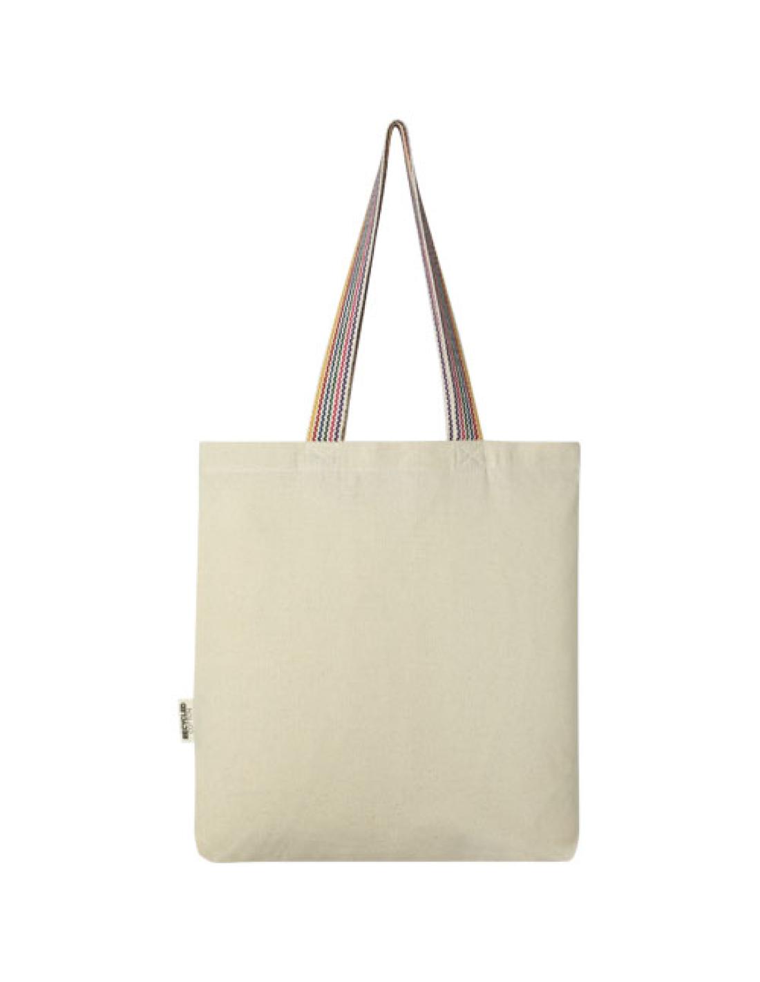 La bolsa tote "Rainbow" de 180 g/m² es una mejora instantánea del tote de algodón normal. Hecha de algodón reciclado preconsumo, esta bolsa para ir al supermercado cuenta con asas de agarre de 25 cm de cinta de arcoíris y un fondo ancho de 3,5 cm para tener un poco más de espacio de almacenamiento. Resistencia hasta 5 kg de peso.