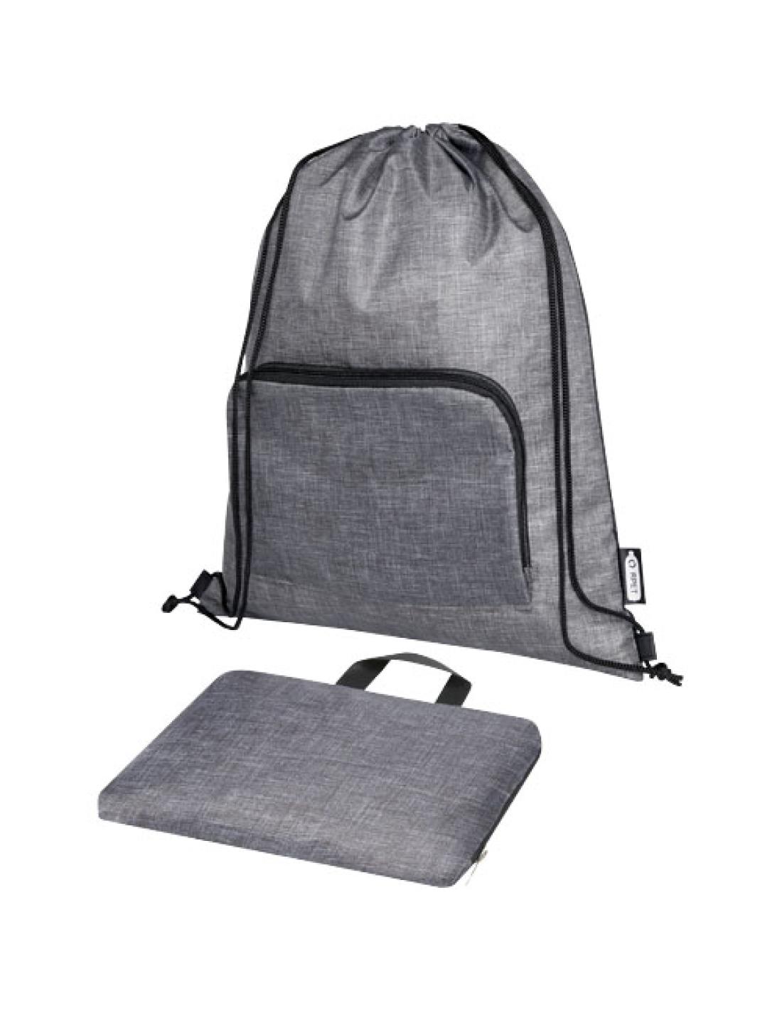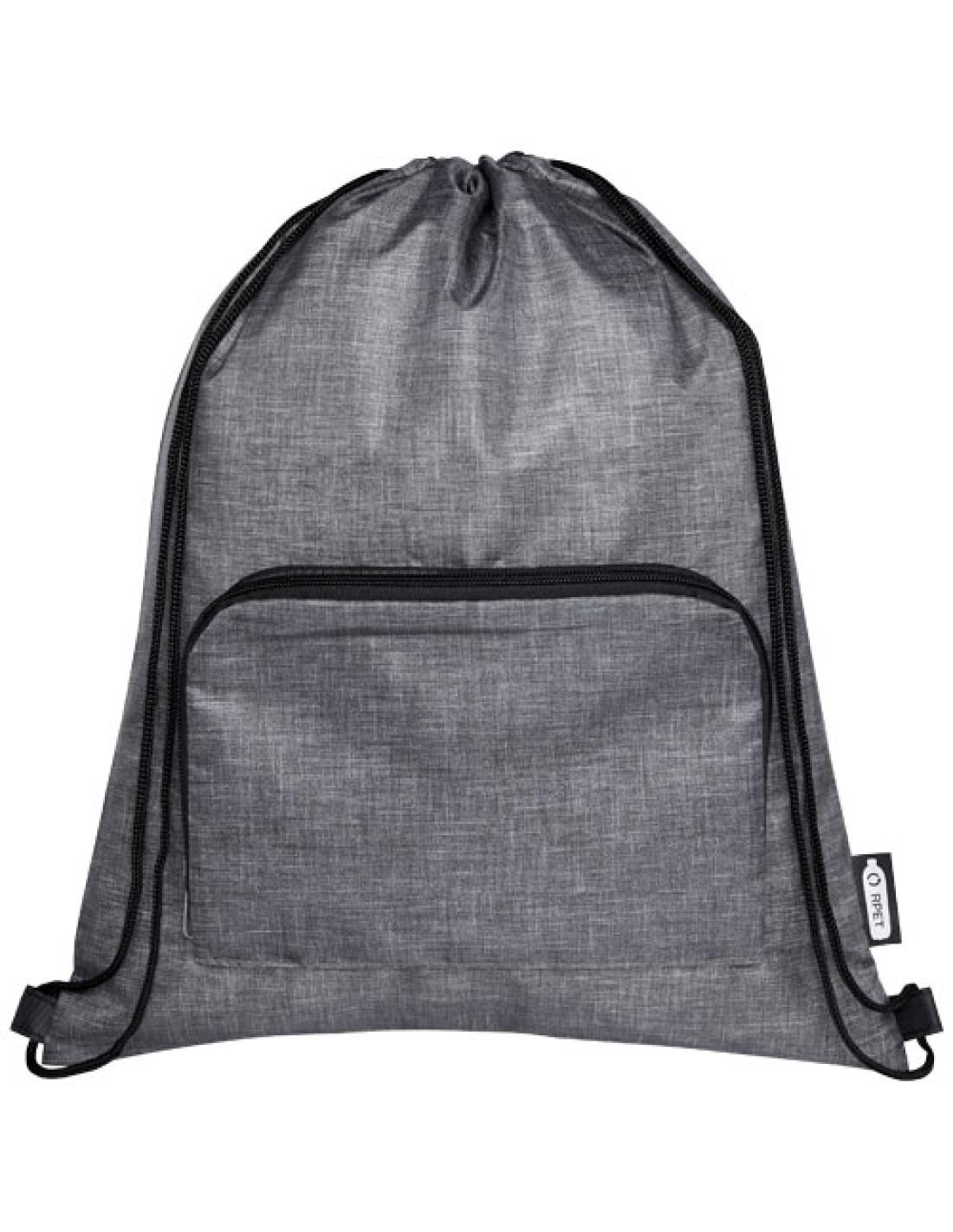 La bolsa con cordón plegable reciclada "Ash" cuenta con un compartimento principal con cierre de cordón de ajuste y uno delantero con cremallera en el que la bolsa se puede plegar fácilmente para facilitar su transporte y almacenamiento.