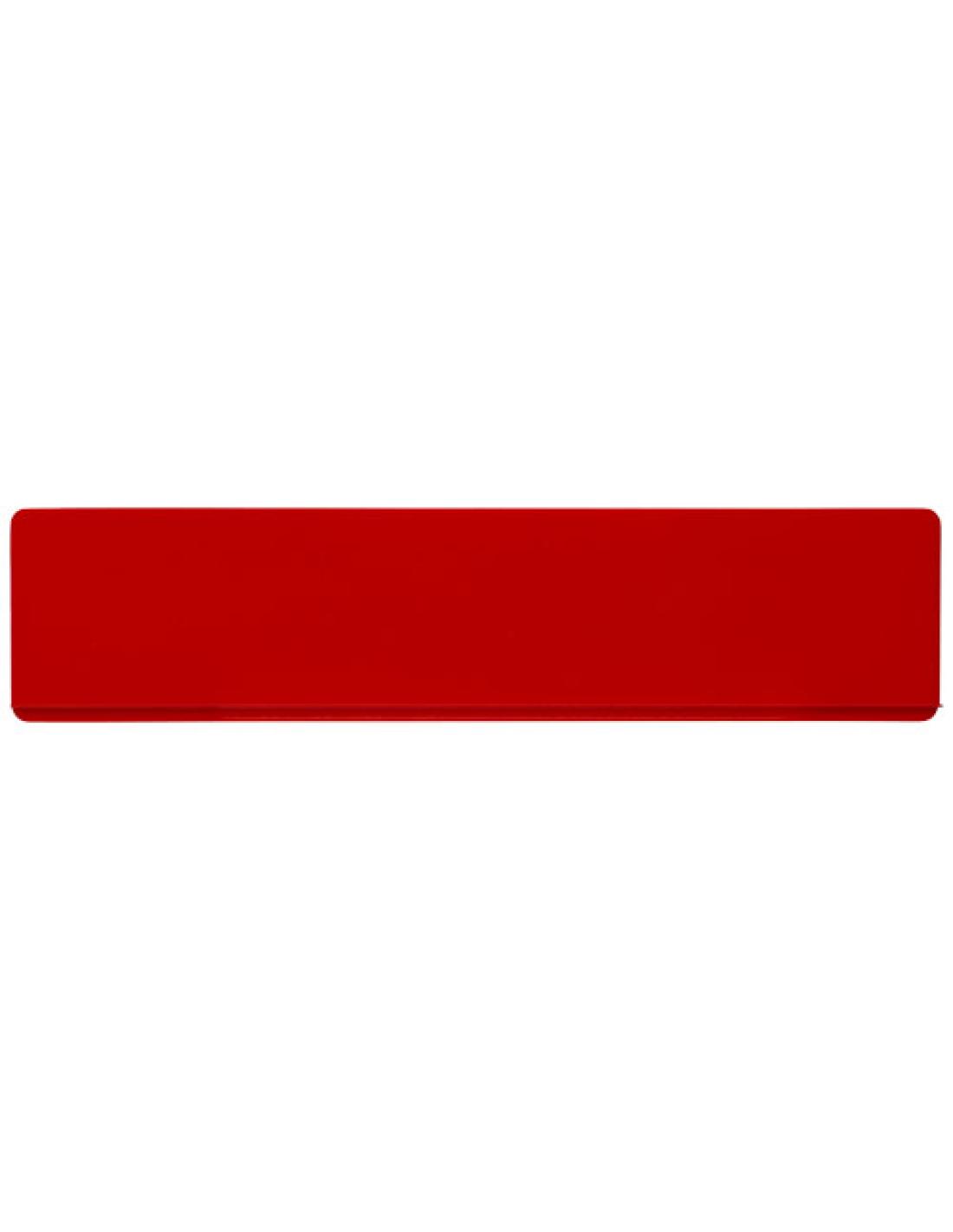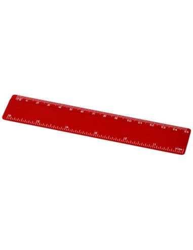 Regla de plástico reciclado sólida con marcas tanto en pulgadas como en centímetros.