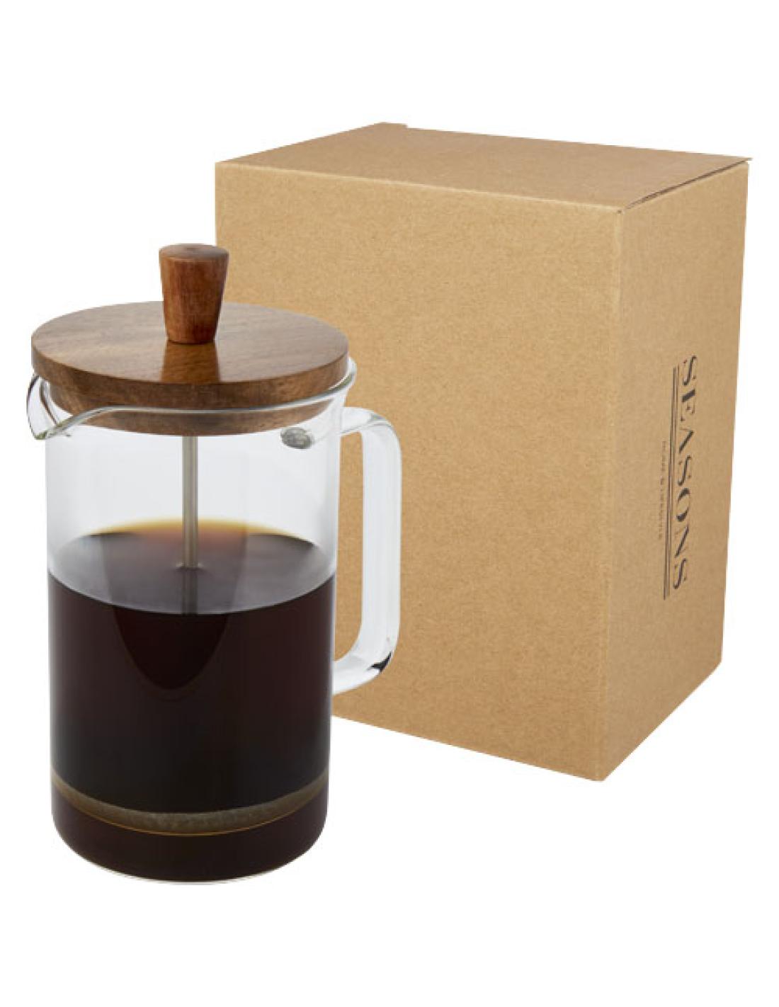 Cafetera de prensa francesa con un diseño elegante y tapa de madera de acacia que procede de fuentes sostenibles, ecológicas y socialmente responsables. Capacidad de 600 ml. Prepara tres tazas de café recién hechas en pocos minutos. Añade café molido grueso a la jarra de vidrio. Llénala con agua caliente y déjalo infusionar a tu gusto. Presiona lentamente el émbolo hacia abajo. ¡Ya está el café! Además, también puedes preparar té, chocolate caliente, leche, té de frutas y limonada. El vidrio borosilicato hace que la prensa francesa no solo llame la atención en tu cocina, sino que también resulte esencial en tus aventuras y salidas.