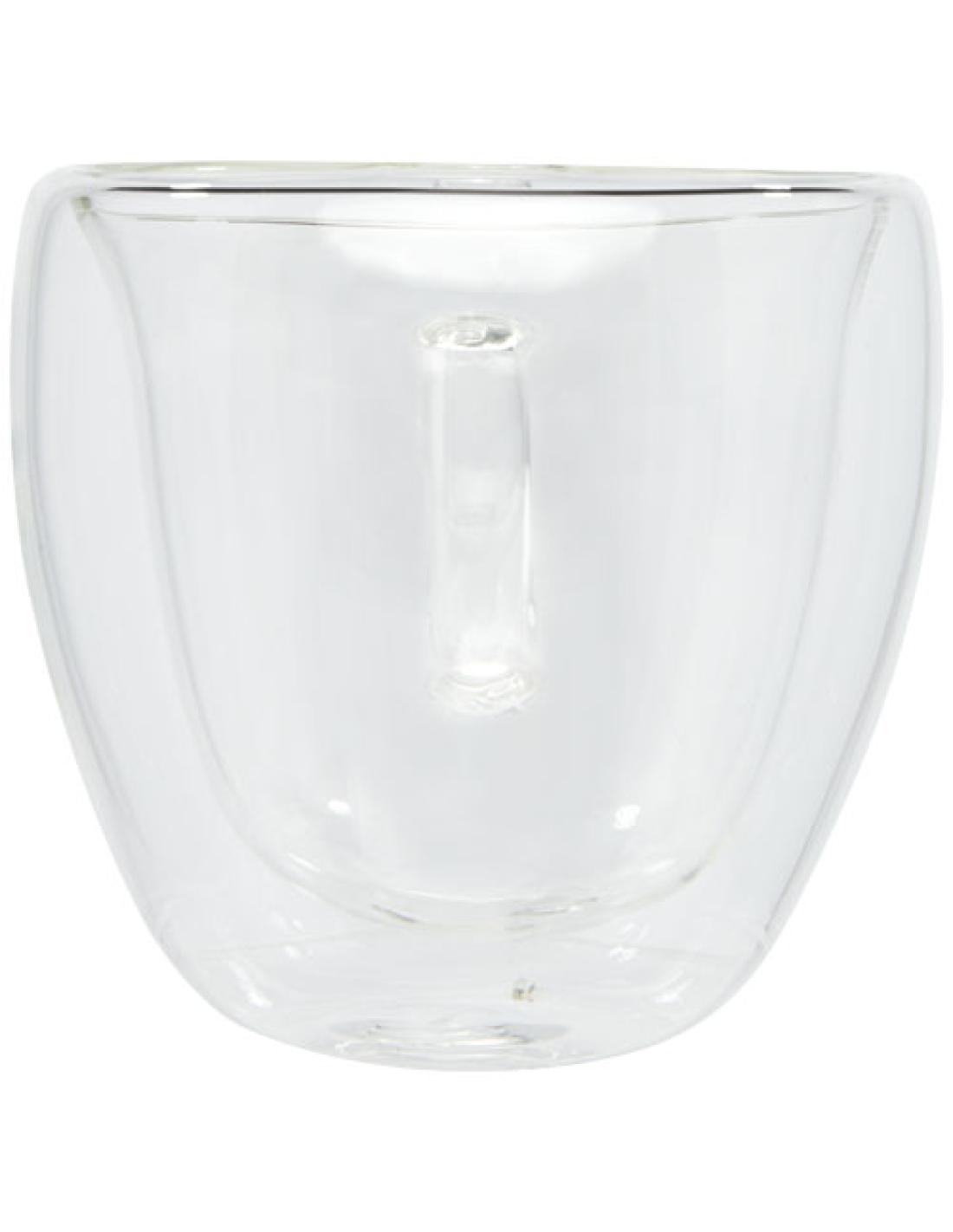 Dos tazas de vidrio de doble pared de 100 ml con posavasos de bambú N10413311