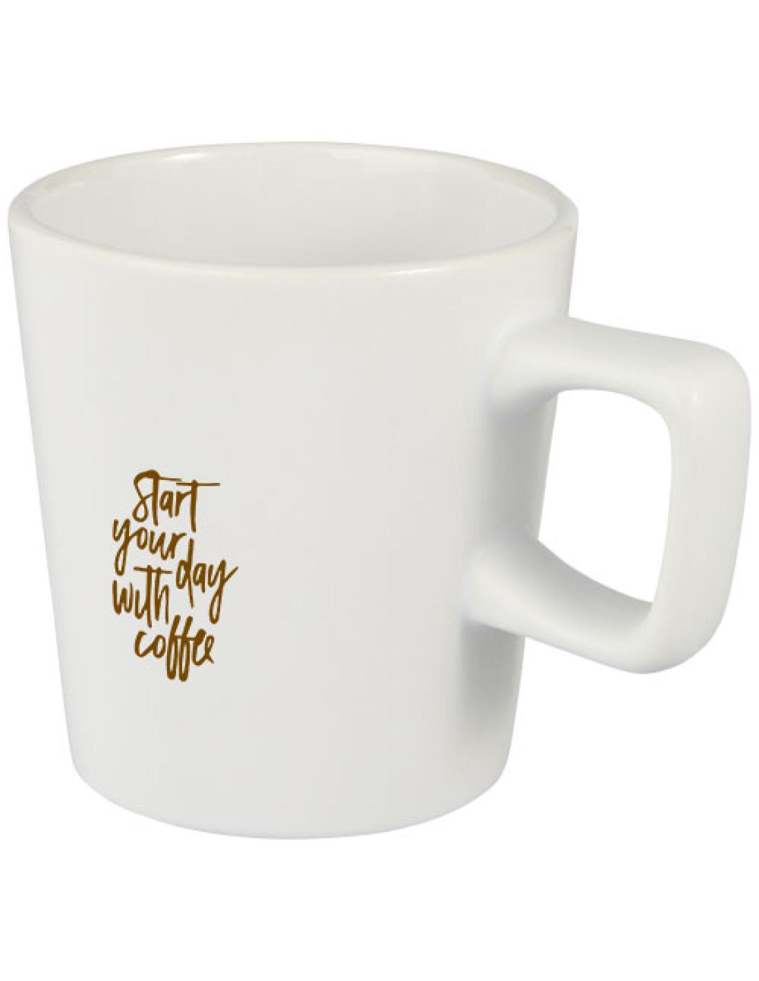 Taza de cerámica de diseño moderno con acabado mate. Capacidad de 280 ml. Todos los métodos de grabación son aptos para lavavajillas. Se presenta en una caja de regalo de cartón reciclado.