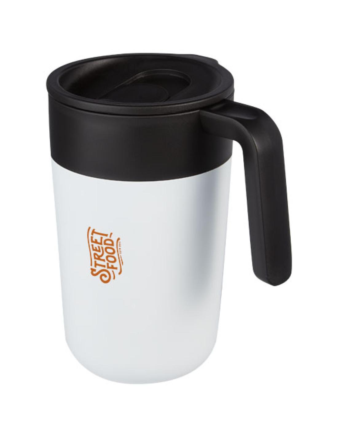 La elegante taza Nordia está fabricada con un exterior de acero inoxidable y un interior de PP reciclado sostenible. La tapa interior, el cierre deslizante y el asa también están hechos de PP reciclado procedente de fuentes certificadas y responsables. La tapa tiene un cierre deslizante, lo que hace que esta taza sea perfecta para disfrutar de tus bebidas mientras viajas. No contiene BPA y ha sido probada y aprobada según la legislación alemana sobre seguridad alimentaria (LFGB), se ha comprobado su contenido en ftalatos según la normativa REACH. Capacidad de 400 ml. Se recomienda lavar a mano.