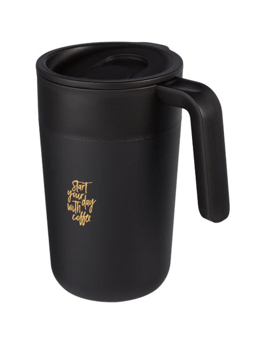 La elegante taza Nordia está fabricada con un exterior de acero inoxidable y un interior de PP reciclado sostenible. La tapa interior, el cierre deslizante y el asa también están hechos de PP reciclado procedente de fuentes certificadas y responsables. La tapa tiene un cierre deslizante, lo que hace que esta taza sea perfecta para disfrutar de tus bebidas mientras viajas. No contiene BPA y ha sido probada y aprobada según la legislación alemana sobre seguridad alimentaria (LFGB), se ha comprobado su contenido en ftalatos según la normativa REACH. Capacidad de 400 ml. Se recomienda lavar a mano.