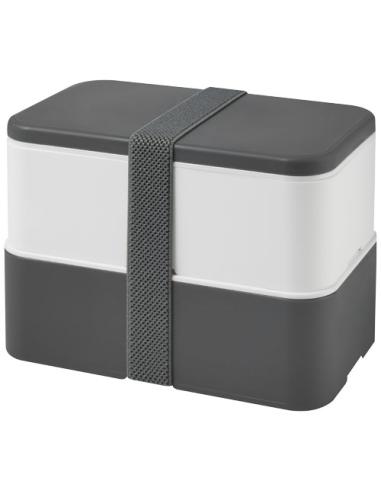 A lo grande con esta fiambrera de doble capa "MIYO". Con una o dos bases de 700 ml de capacidad, hay mucho espacio para sándwiches, frutas, ensaladas y mucho más, y todo se mantiene en su lugar con una banda fabricada con PET reciclado. Hay disponibles otras combinaciones de colores y accesorios, como una cuchara/tenedor o un compartimento interior. Ponte en contacto con nosotros para obtener más información. Apta para microondas y para lavavajillas, sin BPA y totalmente reciclable. Fabricada en el Reino Unido y envasada en una bolsa compostable para el hogar. Personaliza completamente tu MIYO añadiendo el nombre de distintos destinatarios en la tapa. Ponte en contacto con nosotros para obtener más información.
