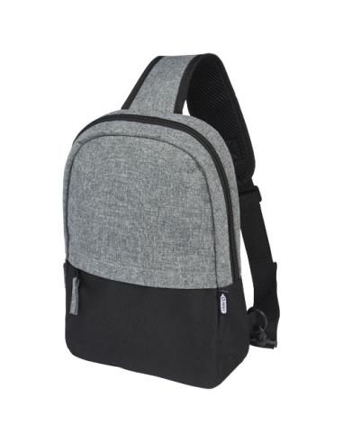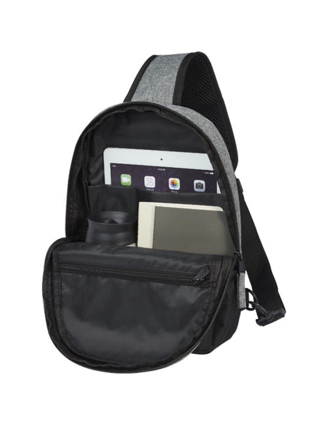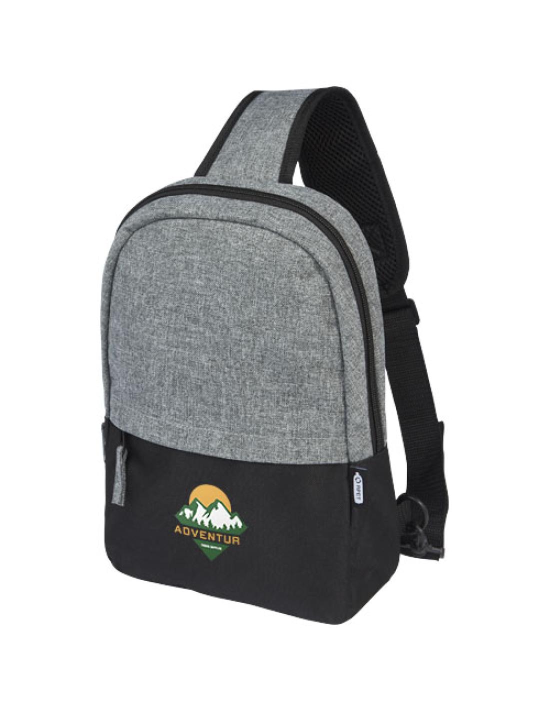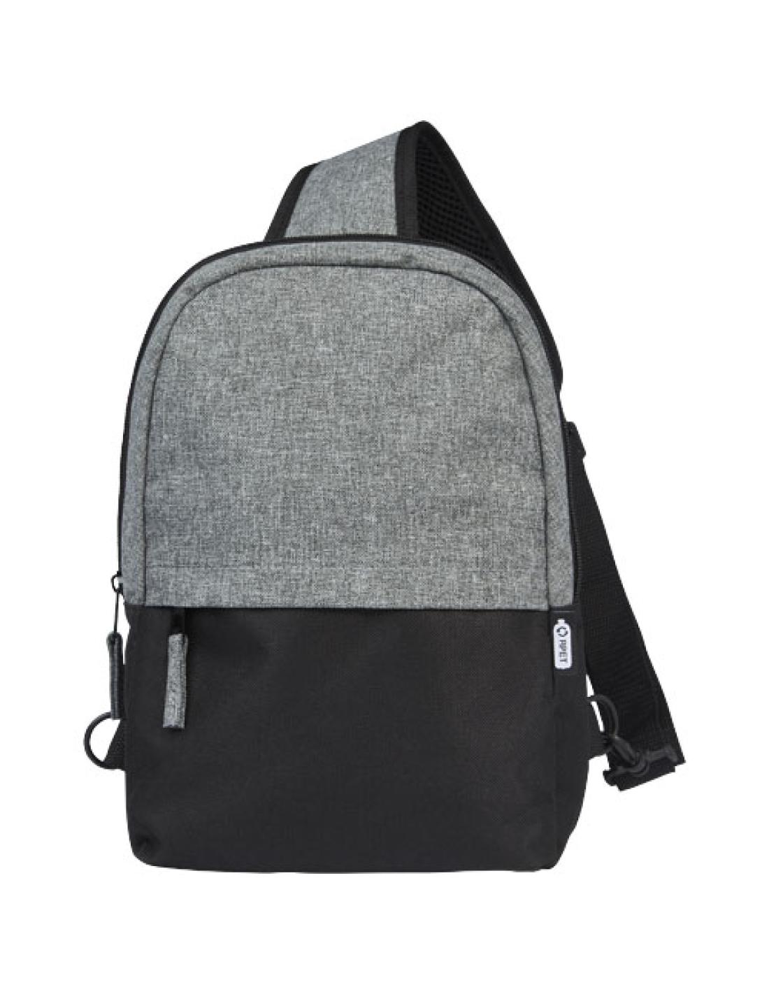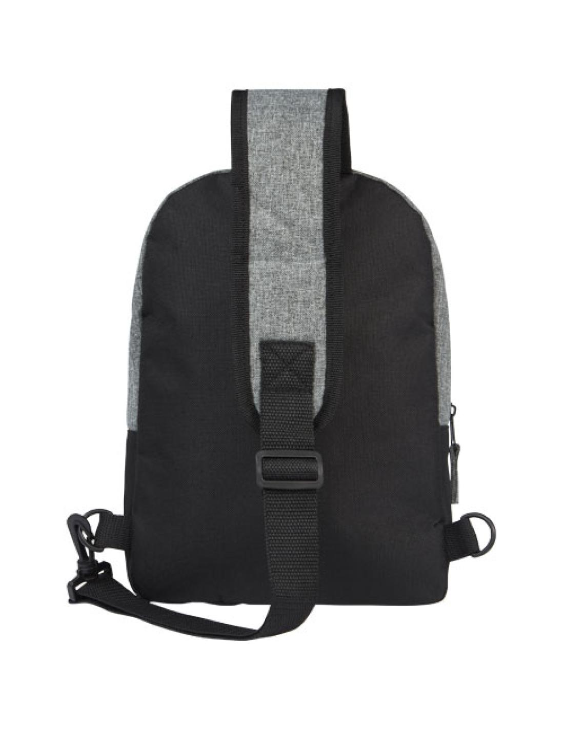 Fabricada con materiales 100 % reciclados en el exterior, la bandora reciclada GRS en dos tonos cuenta con un bolsillo frontal con cremallera, además de un compartimento principal con cremallera que contiene una funda para tabletas de 12 pulgadas. También tiene un bolsillo interno con cremallera para guardar objetos de forma segura y, gracias a su correa de hombro totalmente ajustable y acolchada, es cómoda de transportar.