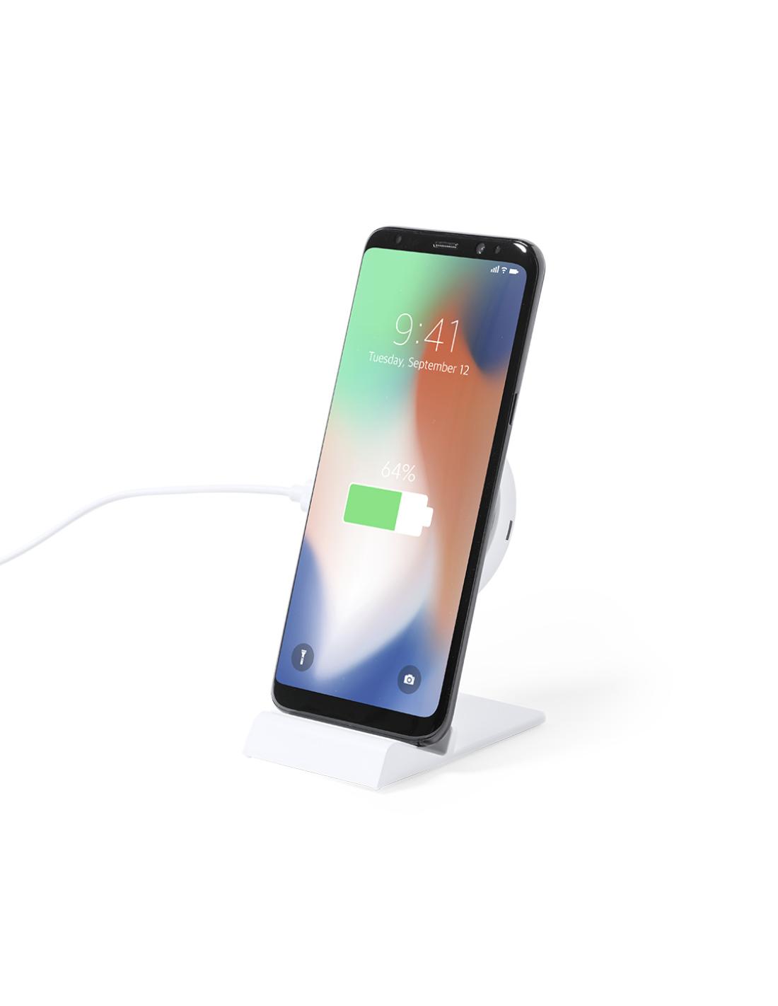 Cargador inalámbrico de carga rápida 15W. En elegante acabado blanco, con base de carga con altura regulable y función soporte para smartphone. Compatible con dispositivos equipados con tecnología de carga inalámbrica. Cable de carga Tipo C incluido, con amplia superficie de marcaje y presentado en atractiva caja de diseño. Disponible manual de instrucciones en español e inglés. En cumplimiento con los requisitos de seguridad: Sistema de protección contra sobrecalentamiento.Sistema de protección contra sobrecarga.Sistema de bloqueo para evitar cortocircuitos.