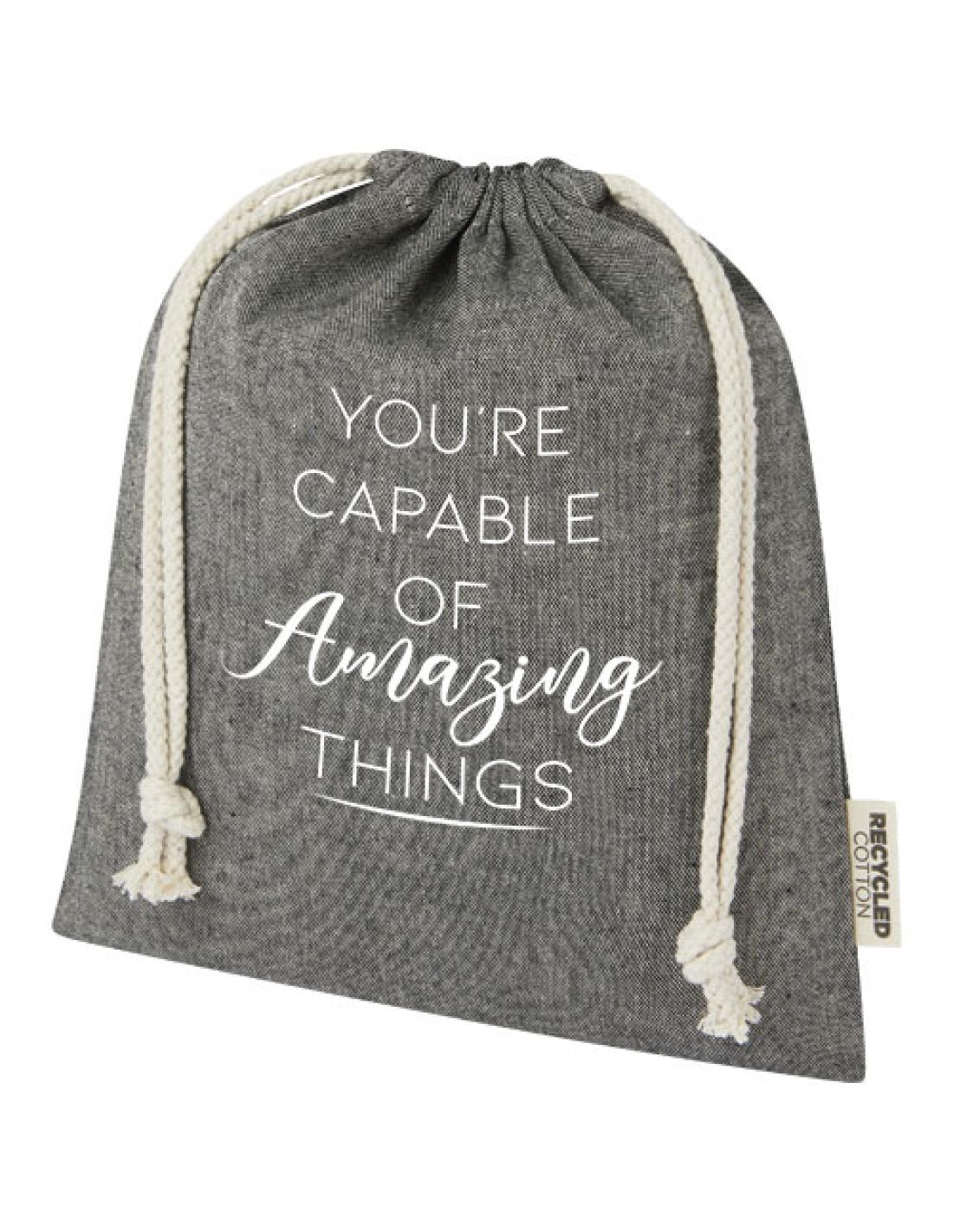 Bolsa de regalo de algodón reciclado con certificación GRS y cierre de cuerda de algodón. Ideal para regalar o guardar artículos. Puede haber pequeñas variaciones en el color del producto real debido a la naturaleza del proceso de producción. Tamaño: 25 x 30 cm.