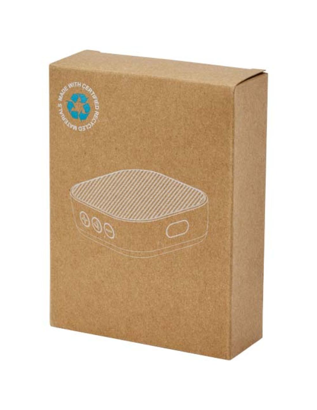 Altavoz Bluetooth® de plástico reciclado con certificación RCS de 3 W para reproducir música, pódcasts u otros contenidos desde cualquier dispositivo con Bluetooth®, por lo que resulta el compañero ideal para cualquier ocasión. El altavoz incorpora controles para la música y un micrófono para llamadas telefónicas y reuniones en línea. Disfruta de entre 3 y 4 horas de música al volumen máximo. El tiempo de carga es de 3 horas. Bluetooth® 5.3 con un rango de alcance de aproximadamente 10 metros. Se entrega con un manual de usuario y un cable de carga USB de tipo A-C de 30 cm, y empaquetado en una caja de cartón 100 % reciclado procedente de fuentes sostenibles.
