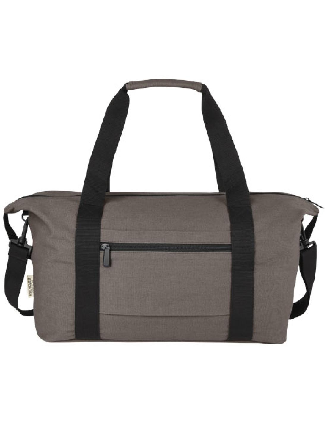 Compuesta por lona reciclada GRS y forro GRS RPET, la bolsa de lona deportiva "Joey" de 25 litros cuenta con un espacioso compartimento principal con cremallera y un bolsillo interior con cremallera para su seguridad. También tiene un bolsillo delantero abierto y otro bolsillo con cremallera de correa en la parte trasera para un carrito. Se puede llevar mediante asas de correa reforzadas o la correa de hombro desmontable y ajustable para mayor comodidad. La placa metálica decorativa puede hacer brillar un logotipo gracias a su acabado sutil y mate.