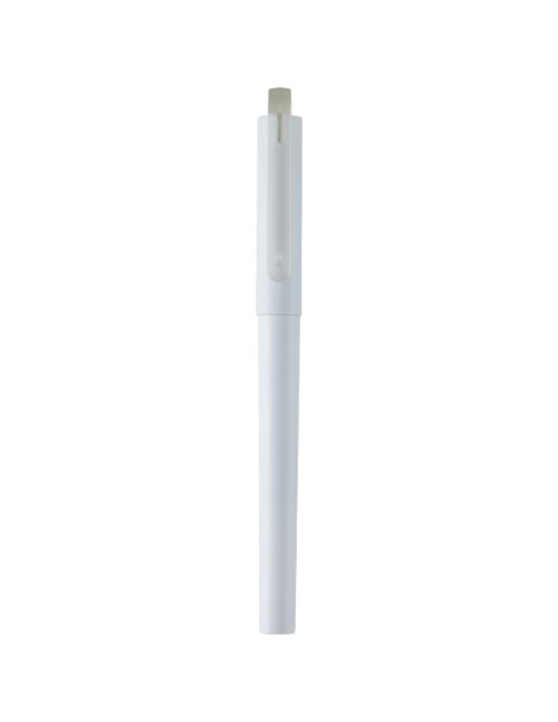 Rollerball fabricado con plástico PET reciclado, lo que contribuye a reducir el uso de plástico virgen. La tinta de un rollerball de gel es una combinación de componentes con base de agua y de aceite, lo que le da un flujo suave y constante que es comparable a una pluma. Este tipo de tinta también es conocida por su resistencia a la decoloración, lo que la convierte en una opción popular para artistas y escritores por igual. Los bolígrafos de gel suelen tener una punta fina de bola que permite una escritura precisa y controlada.