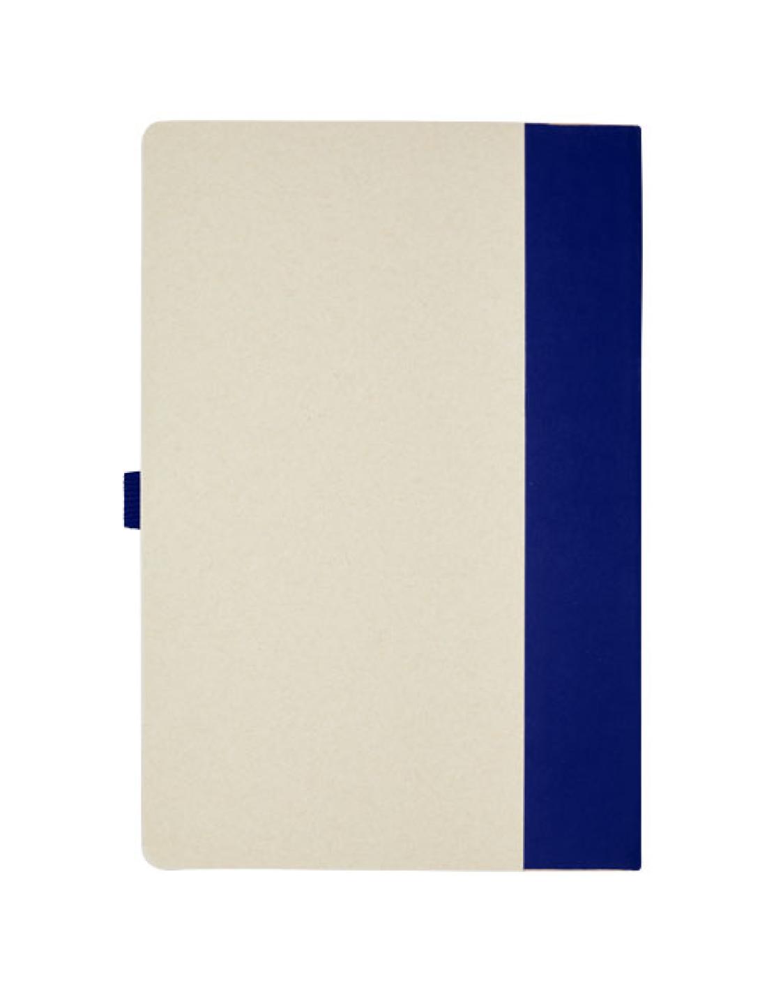 Set de libreta de referencia de tamaño A5 y bolígrafo. La libreta cuenta con 80 hojas con líneas (80 g/m²) hechas a partir de cartones de leche reciclados (hasta un 70 %), un lomo de papel de color y un soporte para bolígrafo. En el soporte, hay un bolígrafo con mecanismo de presión en el color correspondiente de la libreta. El bolígrafo tiene el cuerpo hecho del mismo material de cartón de leche reciclada y el botón, la pinza y la punta están hechos de plástico PLA coloreado. El bolígrafo cuenta con una recarga de negro en el interior. Los cartones de leche usados se recogen, clasifican, procesan y convierten en papel, por lo que los residuos se transforman en un producto útil.