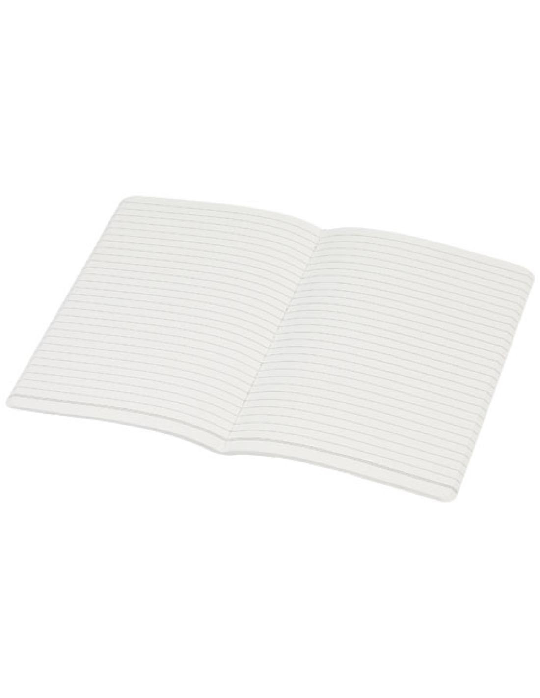 Libreta de tamañao A5, incluye 80 hojas de papel rayado beige (70 g/m2) con cinta y cierre elástico.
