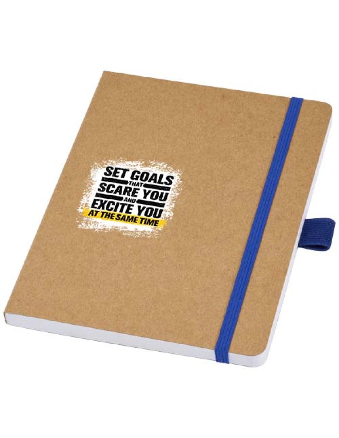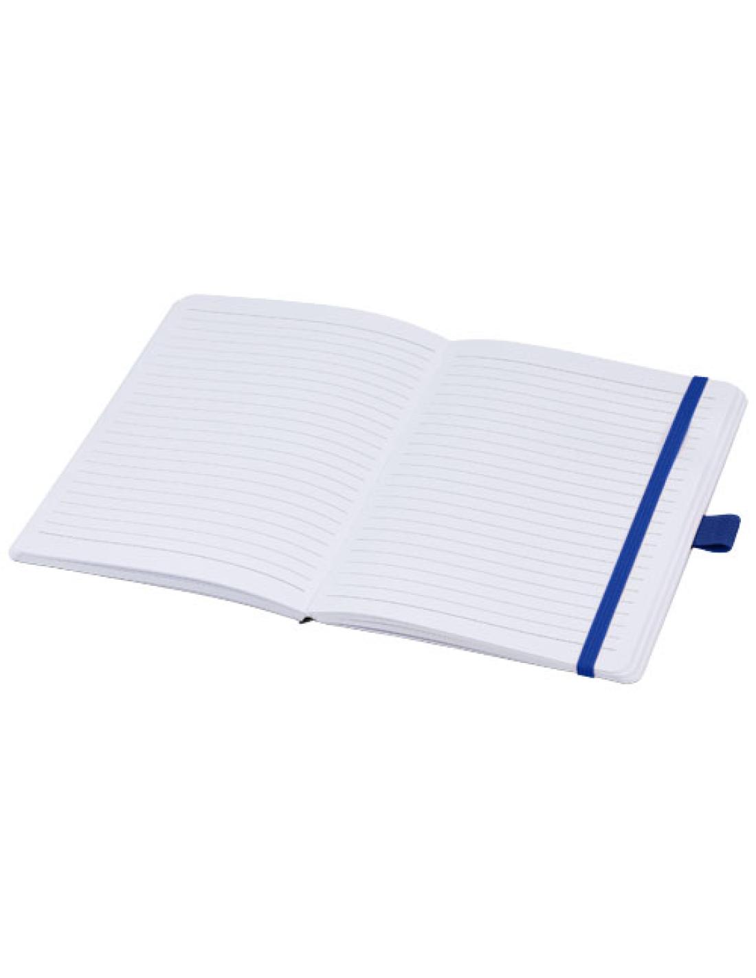 Libreta de papel con líneas reciclado (70 g/m²) 80 hojas con esquinas redondeadas, elástico de color y un soporte para bolígrafo que combina con los tonos del modelo 107384.