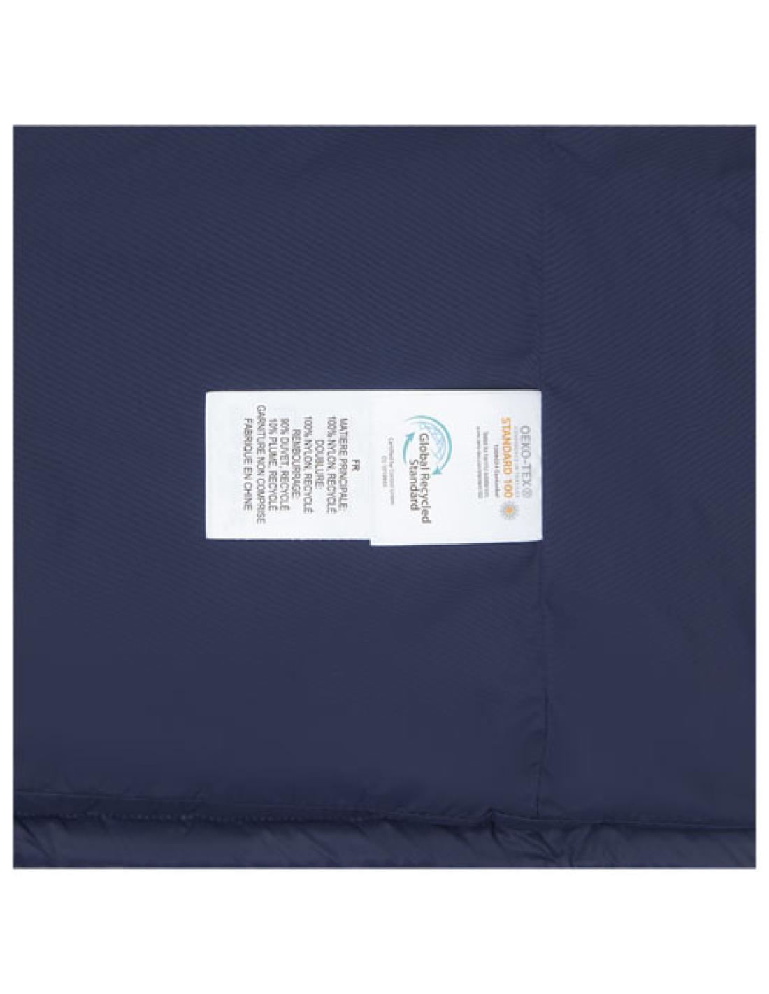 | Material | Tejido Dull cire de poliéster 380T con repelente al agua y acabado a prueba de golpes. Nylon reciclado con certificación GRS, Padding/filling, Down insulation: Responsible Down Standard (RDS) Plumón reciclado Plumas recicladas, 115 g/m2 |