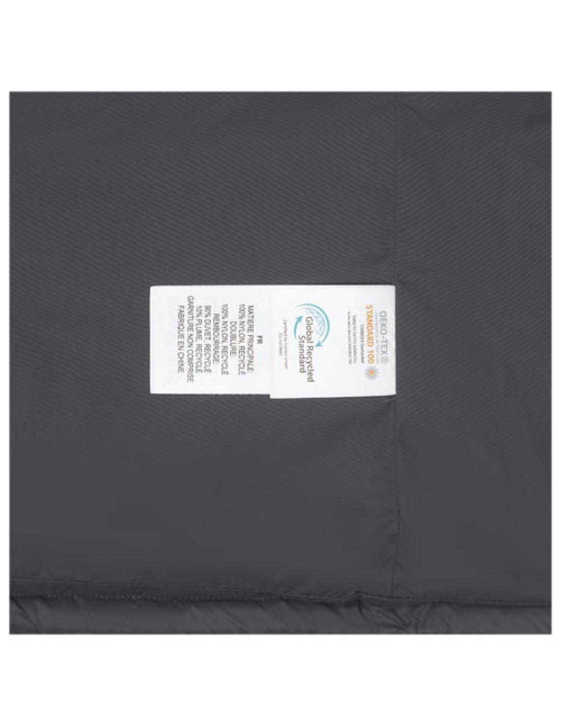 | Material | Tejido Dull cire de poliéster 380T con acabado repelente al agua Nylon reciclado con certificación GRS, Padding/filling, Down insulation: Responsible Down Standard (RDS) Plumas recicladas Plumón reciclado, 115 g/m2 |