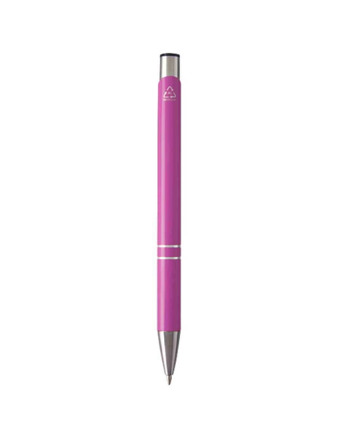 Bolígrafo de aluminio reciclado con acabado lacado, brillo pulido y llamativos detalles cromados. Para producir aluminio reciclado se necesita menos energía que para obtener aluminio a partir de materias primas, lo que lo convierte en una opción más sostenible. También disminuye la cantidad de residuos en los vertederos y ayuda a conservar los recursos naturales con el objetivo de reducir las emisiones de gases de efecto invernadero. Tinta negra. Longitud de escritura: 600 metros.