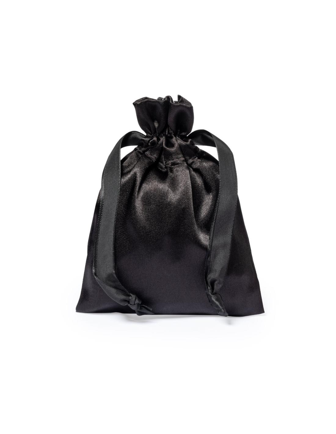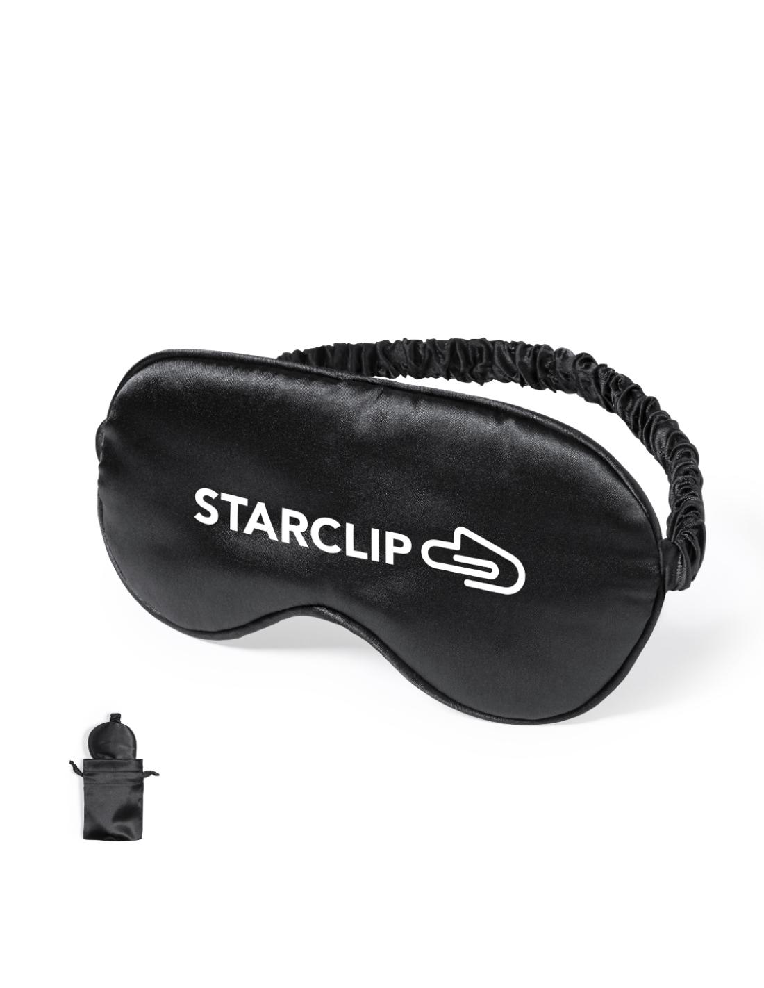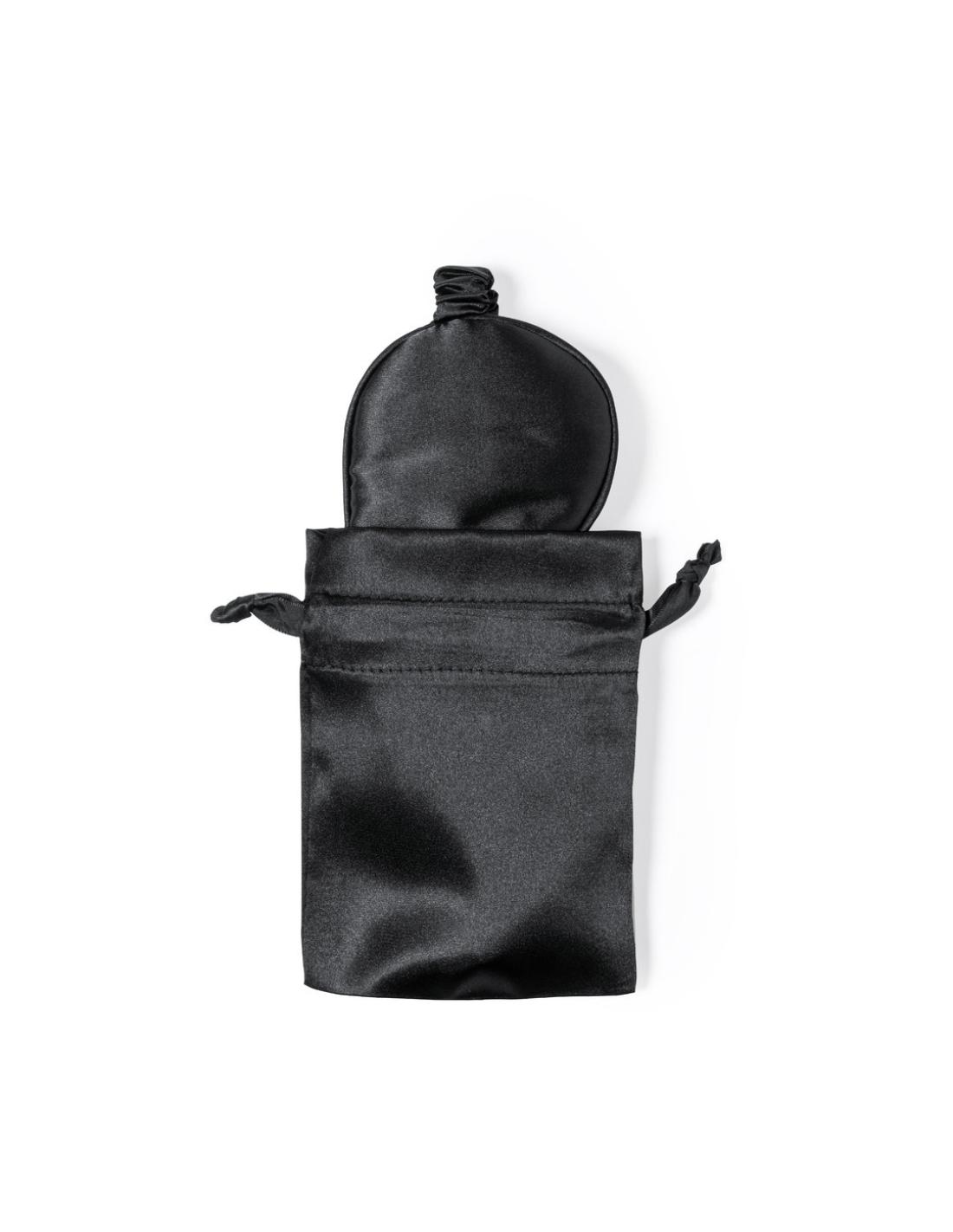 Antifaz de descanso en suave satén, con cinta elástica a juego. Presentado en bolsita individual de satén con cierre de cordón a juego.