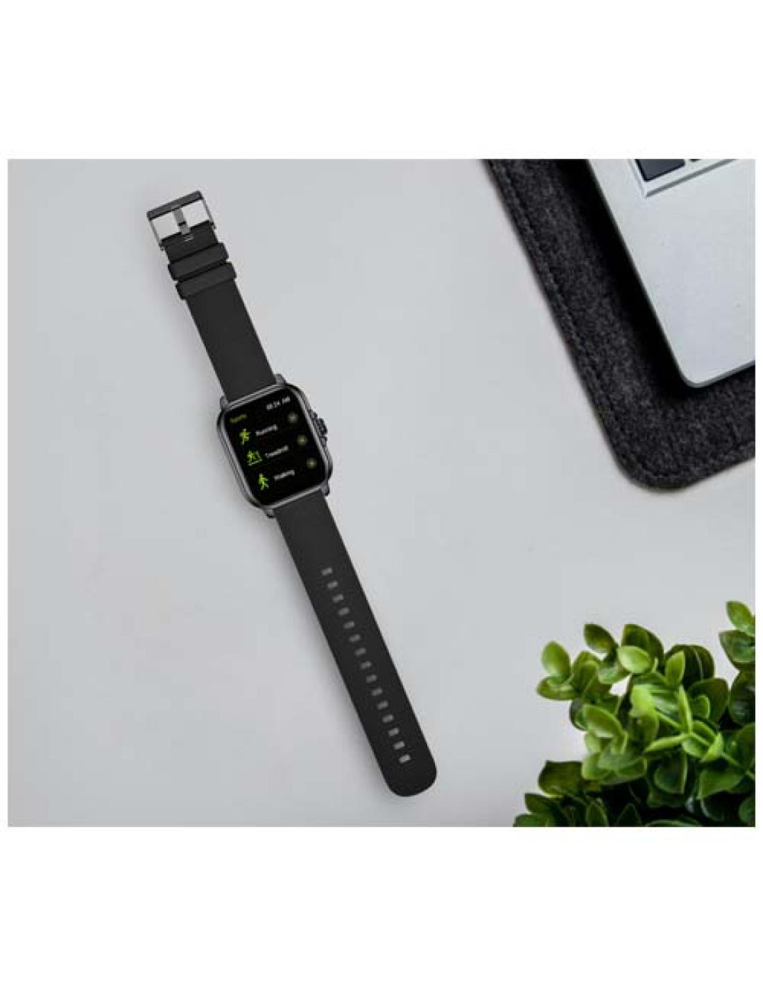 Pantalla táctil a color de 1,3 pulg. Mide el ritmo cardíaco, el oxígeno en sangre y la presión sanguínea. Incluye una función de podómetro y termómetro y es capaz de monitorizar múltiples actividades deportivas. Monitor de sueño, alarma de cronómetro, notificaciones, recordatorio de llamadas y cámara remota. Capacidad de la batería: 170 mAh. Compatible con iOS y Android. Impermeabilidad IP68. Bluetooth 5.0. Se entrega en una lujosa caja de regalo.