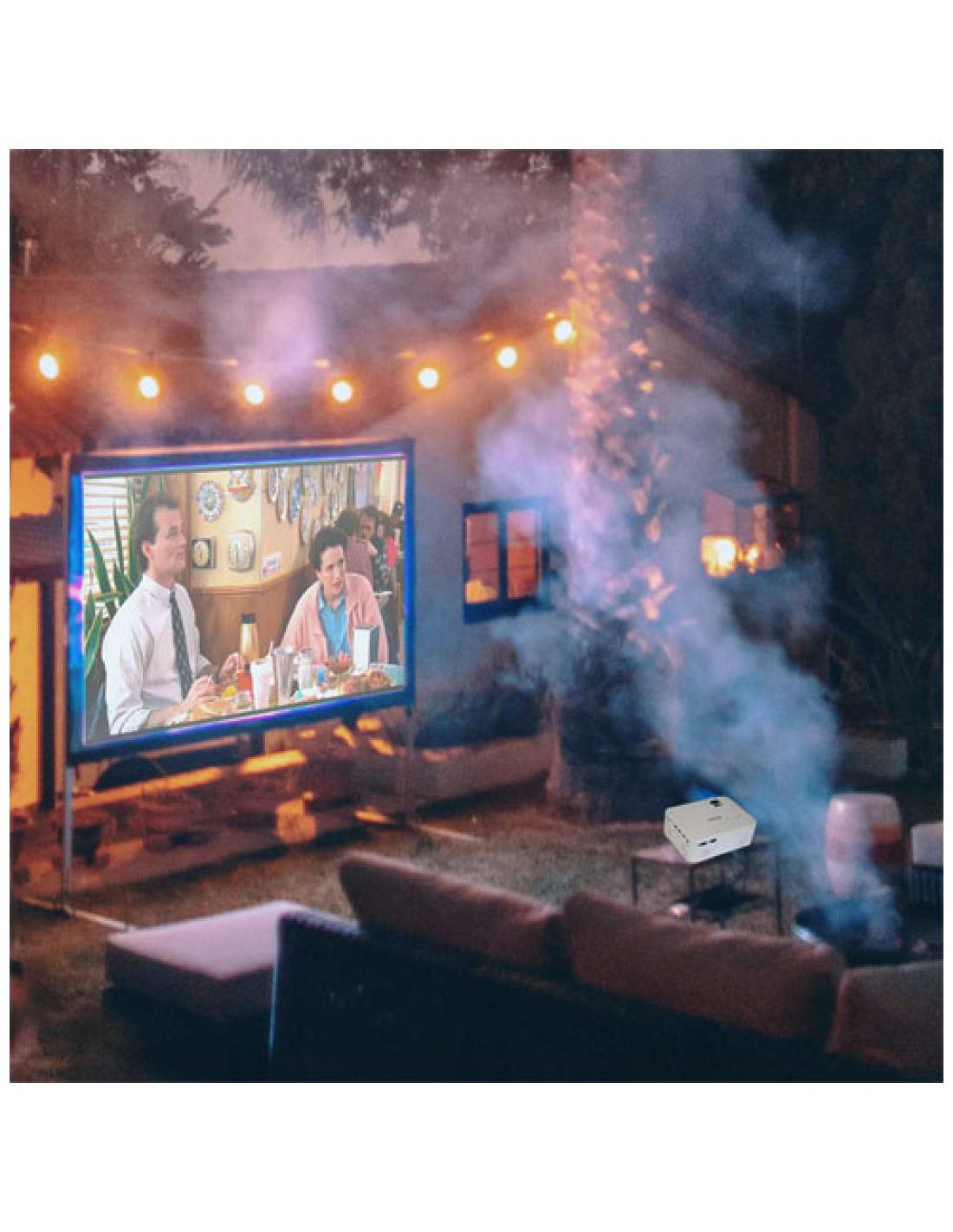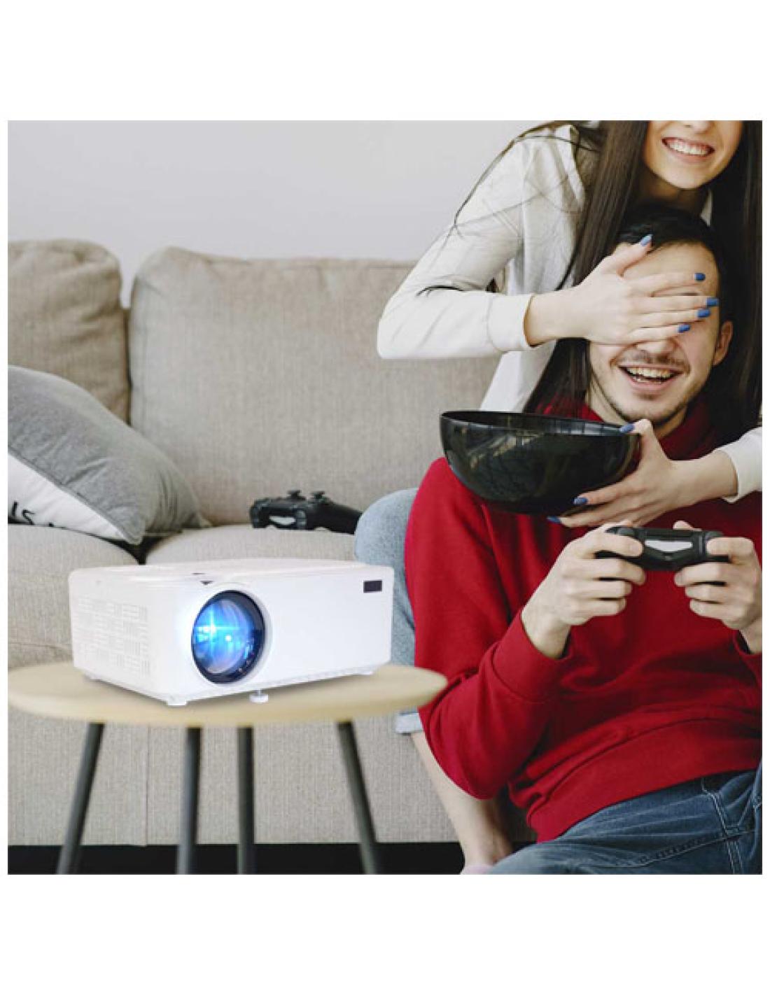 Proyector con una resolución de 800 x 480 y una distancia de proyección de hasta 5 metros. Lámpara con una potencia de hasta 2800 lúmenes. Luz LED blanca de 40 lúmenes ANSI. Contraste 500:1. Bombilla LED con más de 50 000 horas de reproducción. Proyección de 76 a 381 cm. Puede conectarse a todo tipo de dispositivos con conexión HDMI. Reproducción de vídeo, audio, fotos y texto. Entradas: VGA, 2 HDMI, USB 2.0, tarjeta Micro-SD y AV IN. Incluye 2 altavoces estéreo y mando a distancia. Se entrega en una lujosa caja de regalo.
