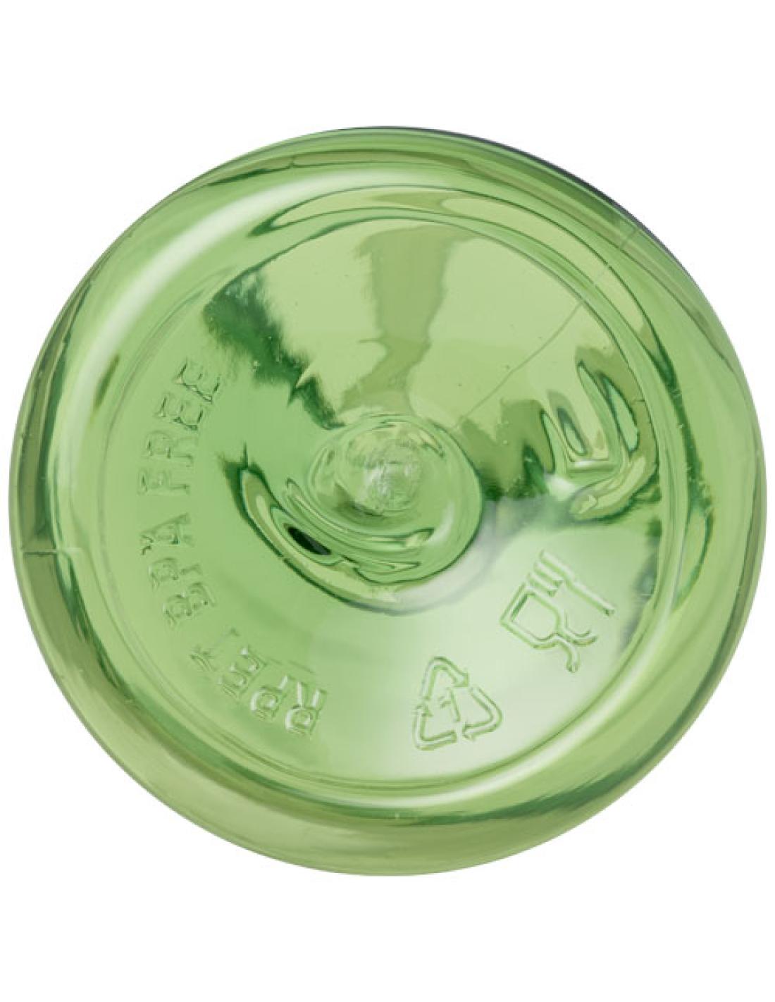 El bidón "Bodhi" de 500 ml está fabricado en RPET y tiene una tapa de acero inoxidable reciclado, que le convierte en una opción más sostenible para quienes buscan un bidón reutilizable. El bidón incorpora un asa para facilitar su transporte. No contiene BPA y se ha probado y homologado según la legislación alemana sobre seguridad alimentaria (LFGB), y se ha comprobado el contenido de ftalatos según REACH.