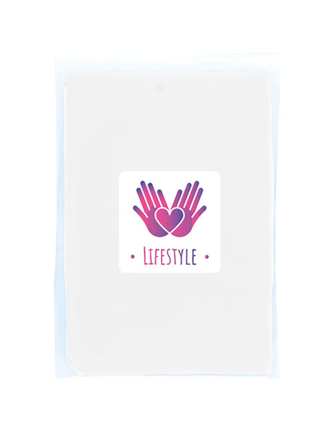 El poncho de lluvia desechable "Mayan" de talla única está hecho de plástico 100 % reciclado. Este poncho transparente con capucha es ideal para tenerlo disponible cuando te sorprenda una tormenta durante un festival o cualquier otro evento al aire libre. Se entrega con una funda apta para la impresión. Tamaño: 90 x 120 cm.