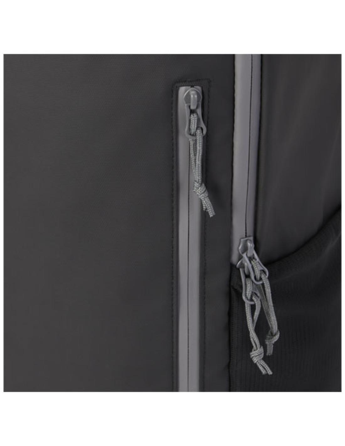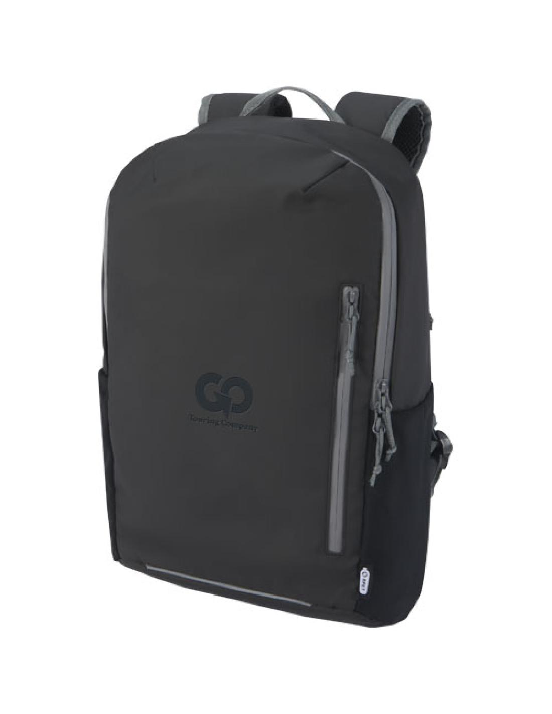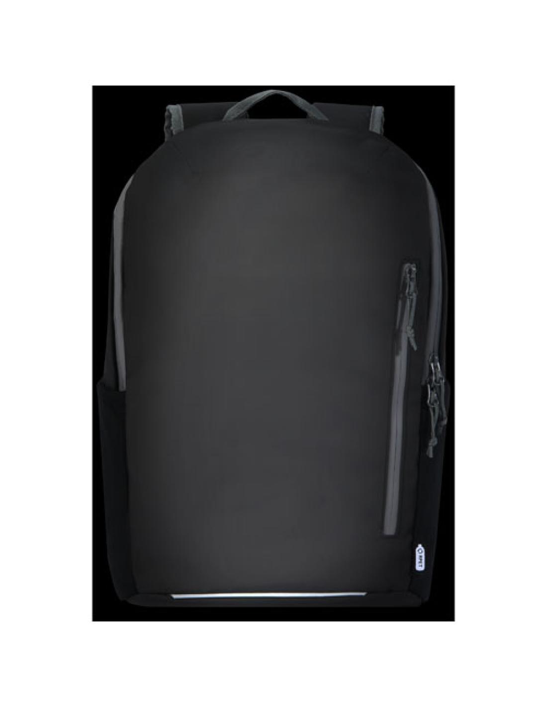 Mochila para portátil resistente al agua fabricada con materiales reciclados certificados GRS, incluidas las cremalleras. Cuenta con un compartimento acolchado para portátil de 15" con abertura lateral de fácil acceso, múltiples bolsillos de malla, bolsillo frontal con cremallera y ribetes reflectantes para mayor visibilidad. El espaldo moldeado y acolchado y la correa ajustable para el pecho hacen que sea cómoda de llevar incluso a plena carga. Los materiales reciclados GRS incluyen el tejido principal, el forro, las correas y las cremalleras. Capacidad: 21 litros. Sin PVC.