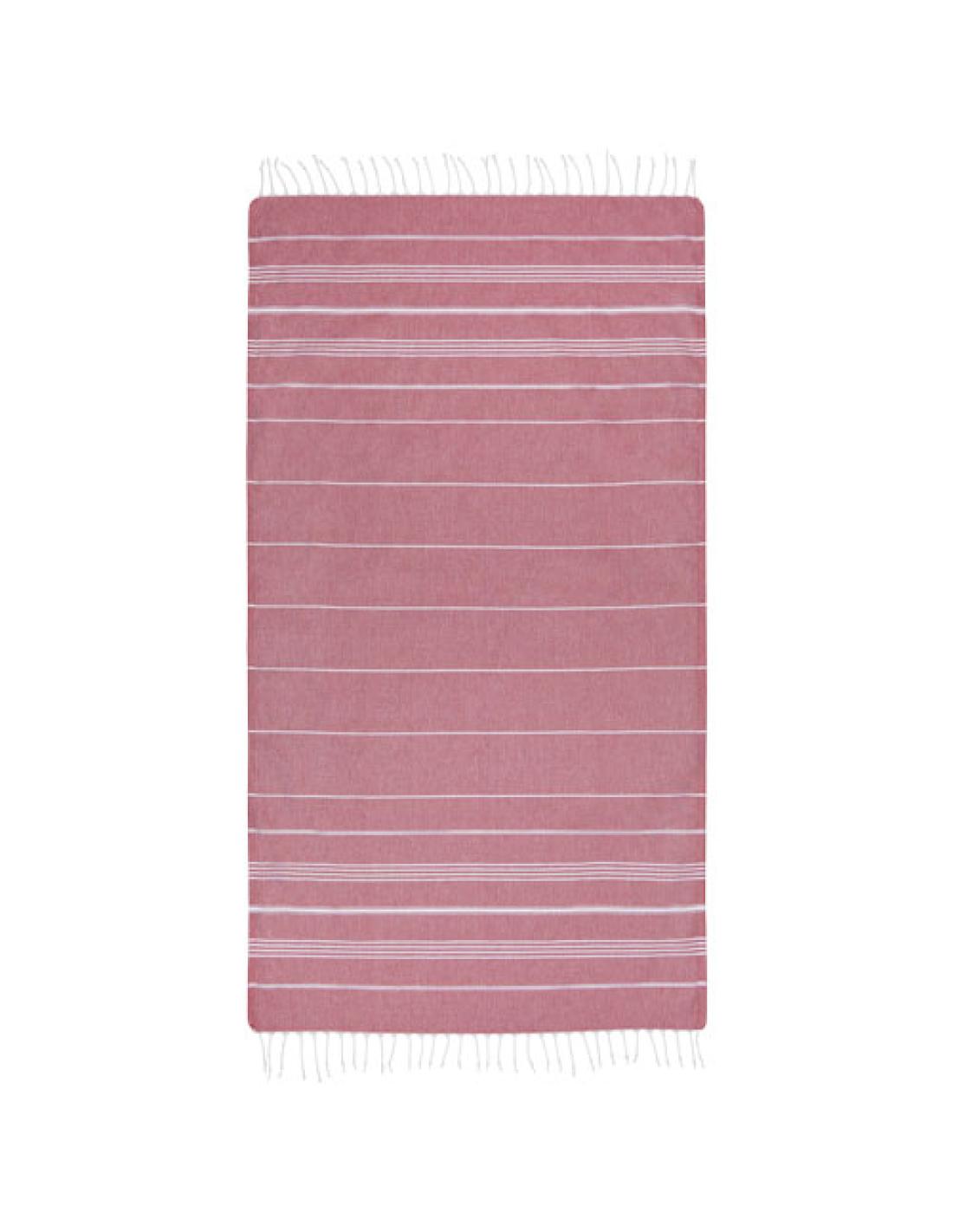 La toalla tipo hammam de algodón de 150 g/m² "Anna" está confeccionada en algodón 100 %, es suave y absorbente y tiene múltiples usos. Se seca rápidamente y es ligera, lo que facilita su transporte. Certificado STANDARD 100 de OEKO-TEX®.
