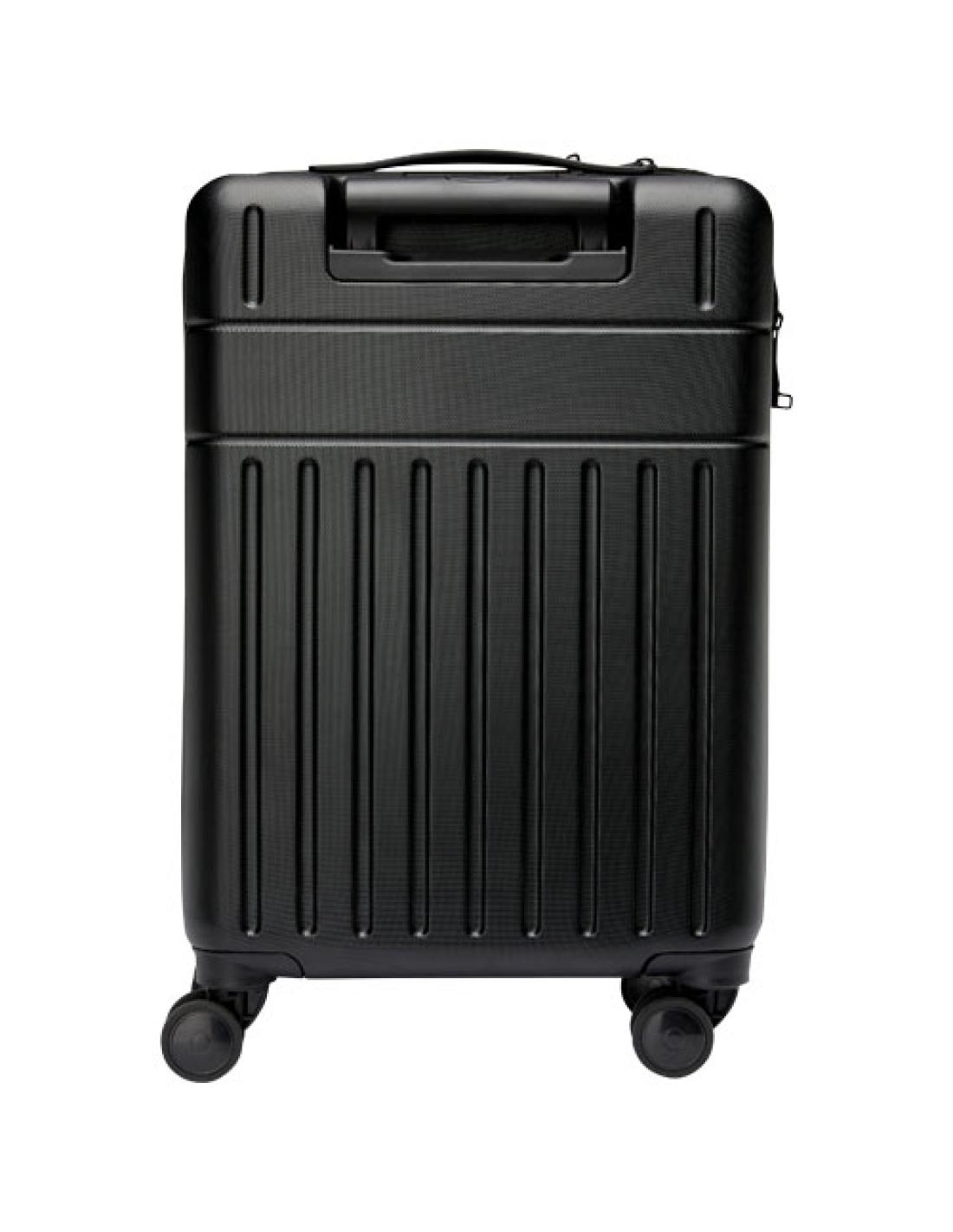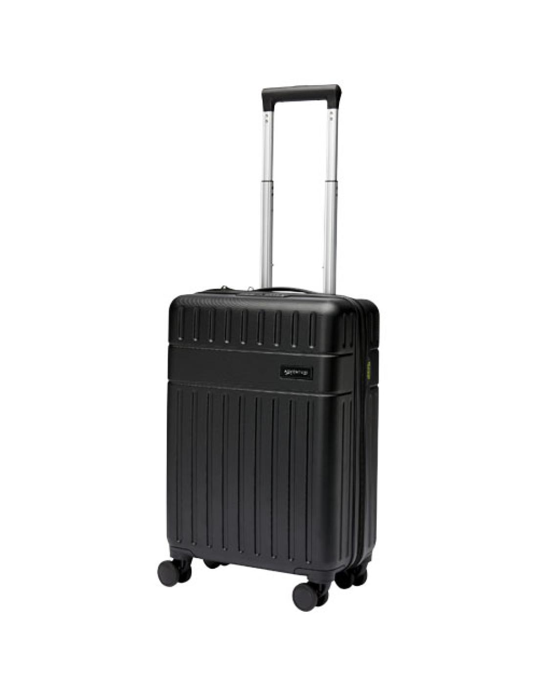 Fabricado con plástico reciclado resistente a los impactos y forro de RPET, el trolley de cabina con ruedas "Rover" de 20" es sinónimo de calidad. Cuenta con una estructura de aluminio de doble tubo, cuatro ruedas con giro de 360 grados, una cerradura de combinación TSA integrada, un asa de fácil agarre para mayor comodidad y compartimentos organizadores en la parte interior. Puede viajar como equipaje de mano en la mayoría de las principales compañías aéreas. El trolley cuenta con certificación GRS, incluida la impresión, por lo que resulta una alternativa más sostenible.