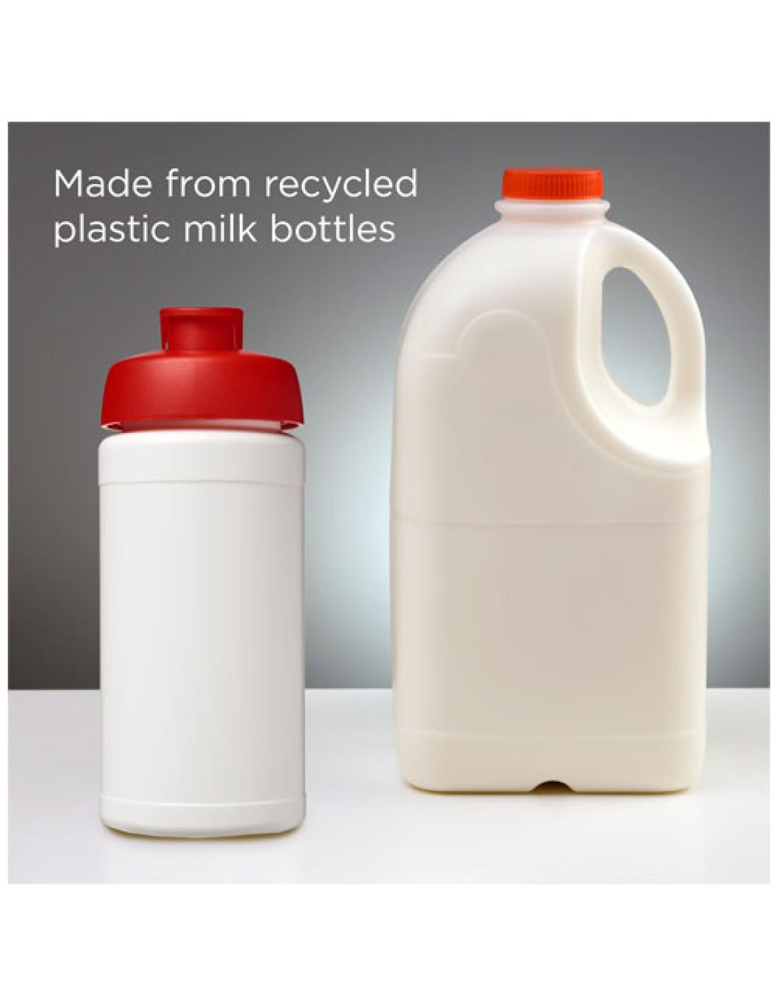 Este bidón deportivo de una capa transforma las botellas de leche de plástico de un solo uso en algo reutilizable. El bidón cuenta con una tapa a prueba de derrames con cierre Flip y una capacidad de 500 ml. Debido a la naturaleza del plástico reciclado, las tonalidades pueden variar ligeramente y puede haber pequeñas manchas de colores. Fabricado en el Reino Unido.