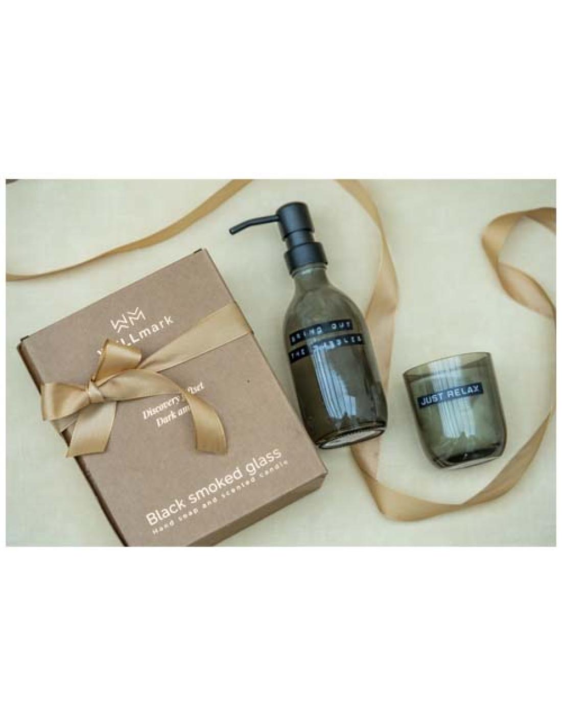 Este bonito juego consta de un dispensador de jabón de manos y una vela perfumada con un agradable aroma a ámbar oscuro. El jabón de manos viene en una botella de cristal de 250 ml con dosificador y es biodegradable y no contiene parabenos, aceite de palma, PEG, SLS ni Sles. La vela perfumada (150 g) está hecha de cera de colza y se consume completamente, por lo que el tarro es reutilizable. Fabricada en los Países Bajos.