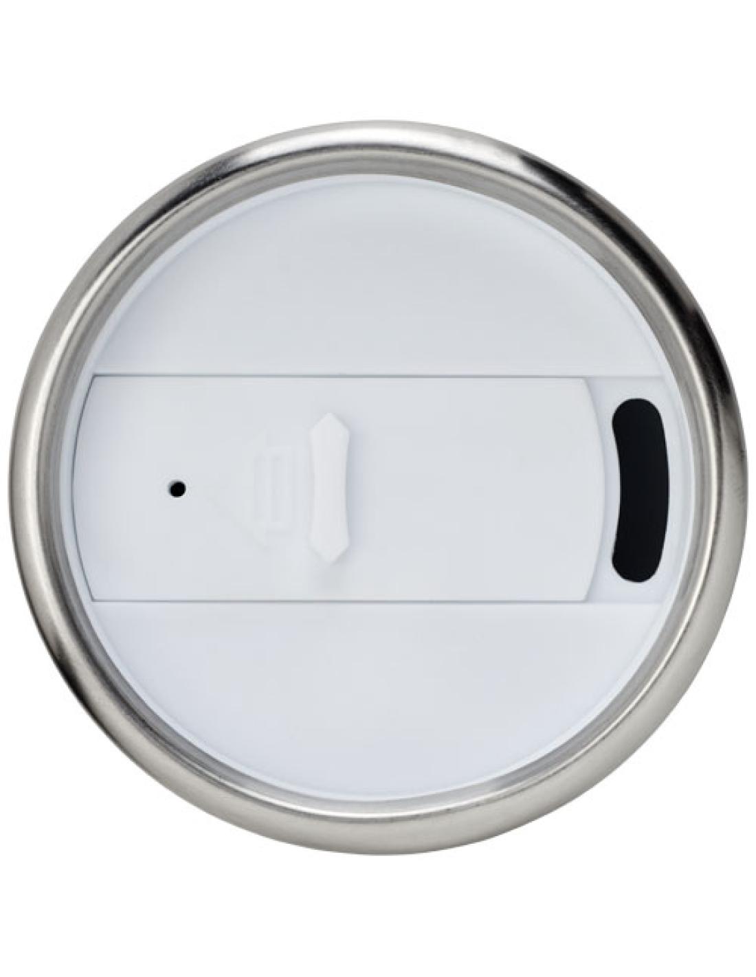 Ya sea para tomar un café por la mañana mientras te desplazas o para disfrutar de una buena taza de té en la oficina, el vaso "Elwood" de acero inoxidable reciclado con certificación RCS es la solución. El aislamiento de doble capa del vaso mantiene las bebidas frías o calientes durante mucho tiempo. Gracias a la tapa de rosca que se ajusta con el pulgar, podrás beber cómodamente. La combinación de acero inoxidable y plástico logra que el vaso sea muy robusto, resistente a la corrosión y fácil de limpiar. Capacidad: 410 ml.