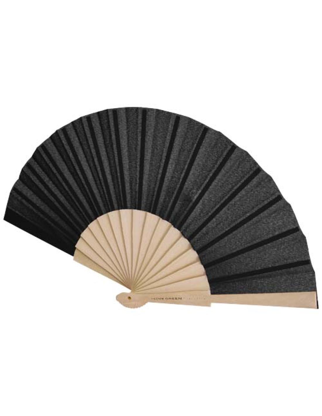Abanico fabricado en madera y poliéster, disponible en una amplia gama de colores.