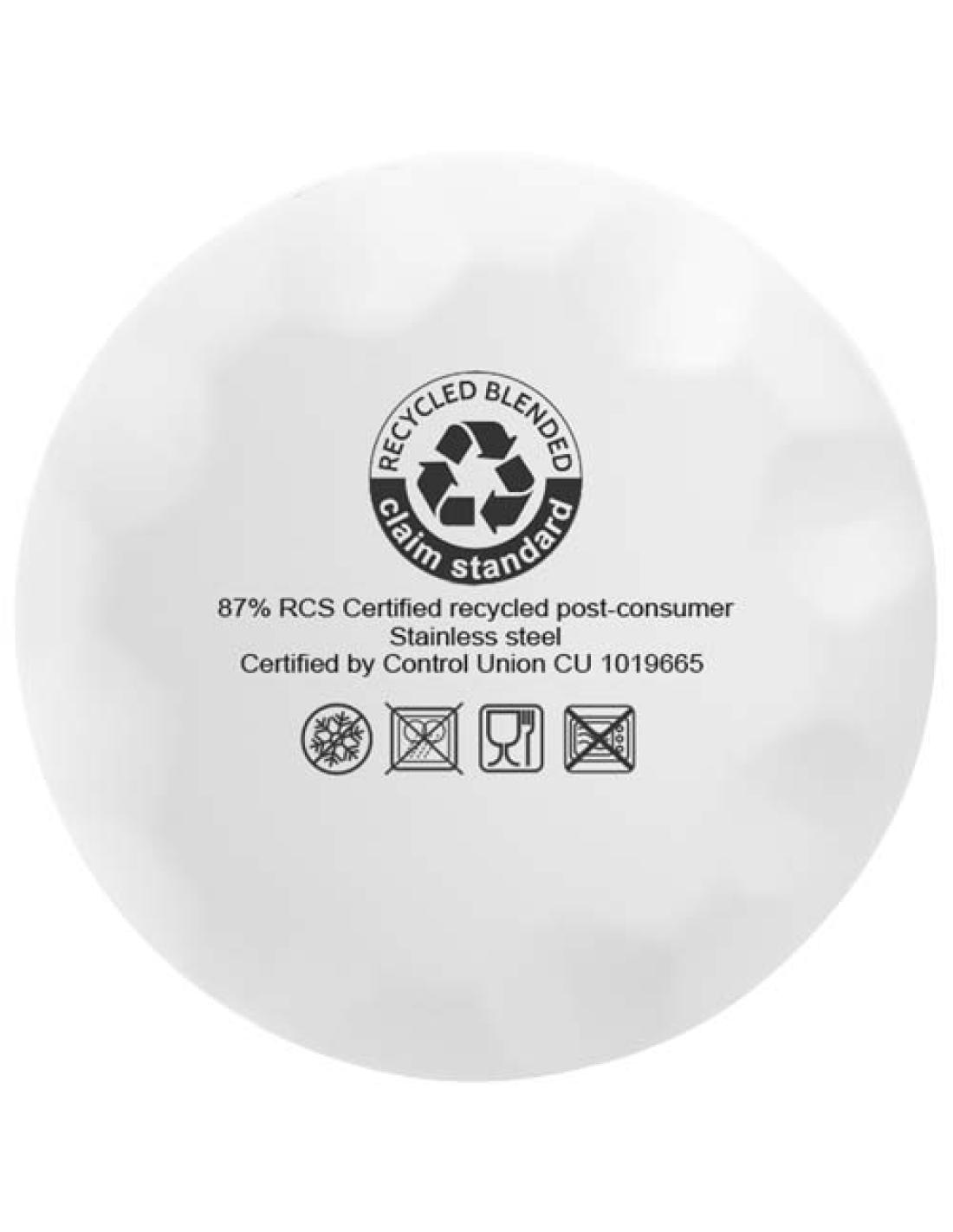 Bidón con aislamiento de acero inoxidable reciclado con certificación RCS y un diseño icónico. Con una base que cabe en la mayoría de los portavasos, este elegante bidón es un artículo promocional perfecto. Probado y homologado conforme a la legislación alemana sobre seguridad alimentaria (LFGB), y comprobado el contenido de ftalatos según la normativa REACH. Capacidad de 500 ml. Se presenta en una caja de regalo de cartón reciclado. Mantiene las bebidas calientes durante 12 horas y frías durante 24 horas.