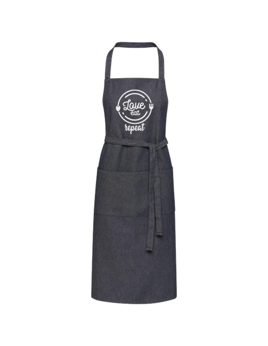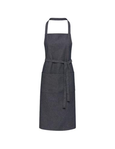 El delantal "Nima" está fabricado con un 70 % de algodón reciclado (320 g/m²) y un 30 % de poliéster reciclado, por lo que resulta grueso, resistente y cómodo. Dispone de 2 bolsillos adyacentes (22 × 20 cm cada uno) y una cinta de 1 metro para atarlo en la espalda. El delantal también incluye un rastreador Aware™. Esta innovadora función permite a los usuarios rastrear el origen y el recorrido de su artículo a través de un código QR, lo que aumenta la transparencia de la cadena de suministro y fomenta una mayor conexión entre el producto y su proceso de producción.