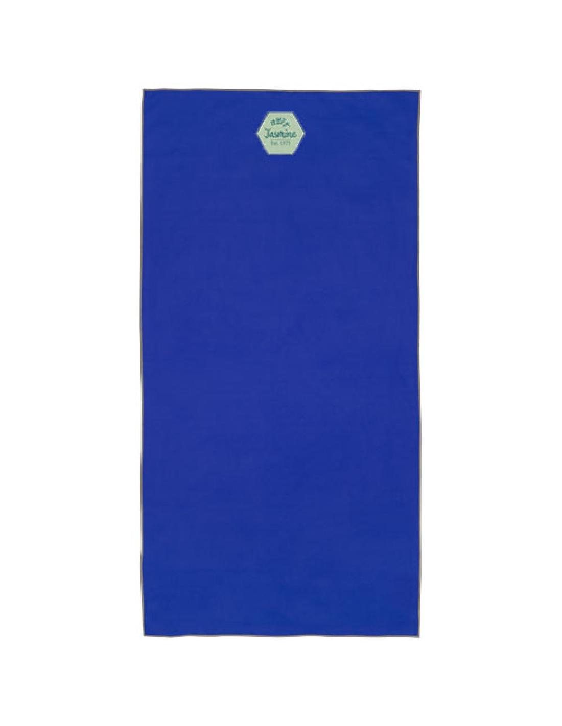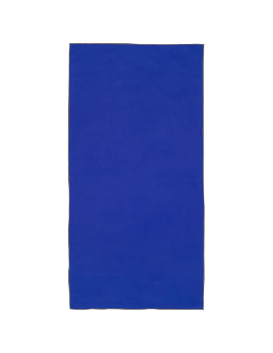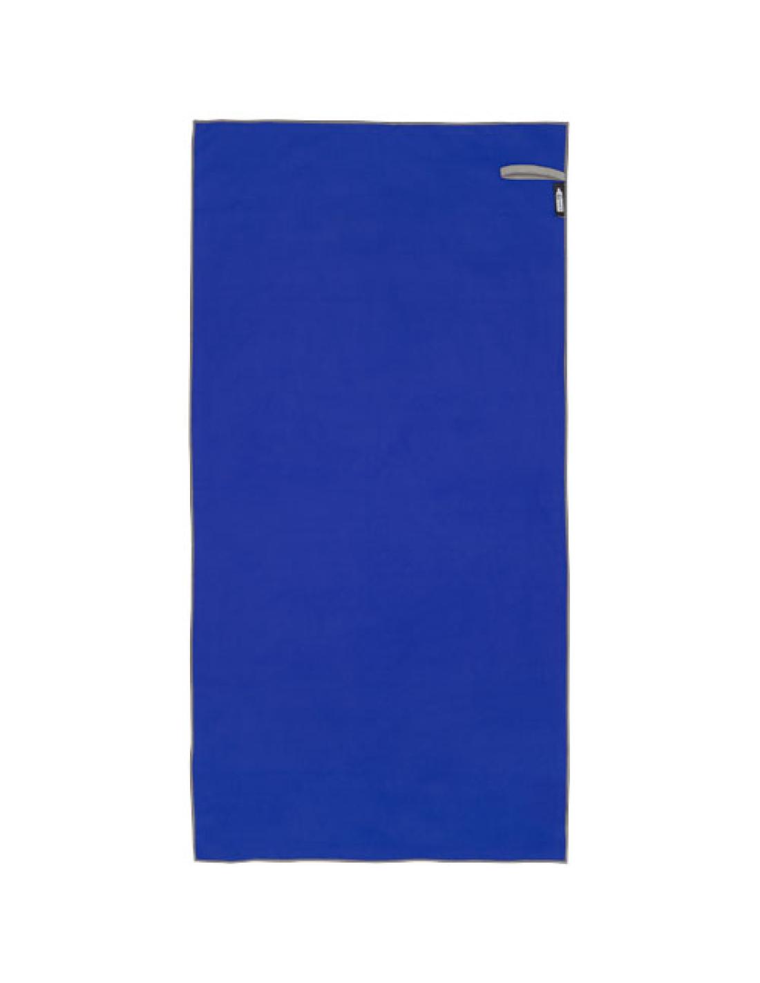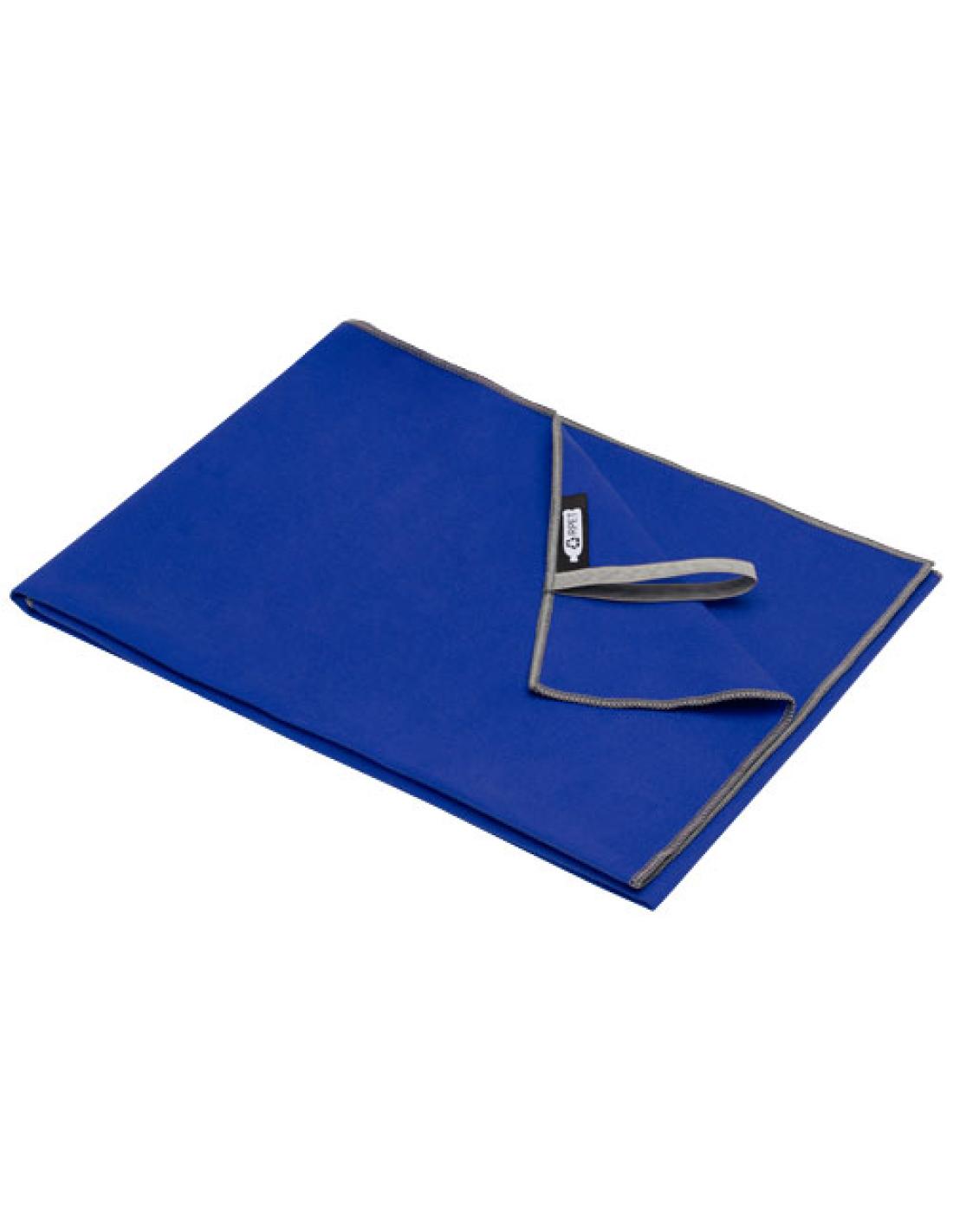La toalla deportiva "Pieter" absorbe muy bien, es ligera, se seca rápido y su tejido es duradero y extremadamente suave. Cuando la toalla está doblada y sujeta con la banda elástica, se reduce a un tamaño pequeño, por lo que es ideal para llevarla al gimnasio y a la piscina o para ir de mochilero o de acampada. La toalla tiene un tamaño de 50 × 100 cm y está fabricada con un 90 % de poliéster reciclado con certificación GRS y un 10 % de nylon, y puede lavarse en la lavadora a 40 °C. Se entrega con una bolsa de almacenamiento (17 × 13 cm) fabricada con plástico PET reciclado, con una gran superficie para imprimir un logotipo.
