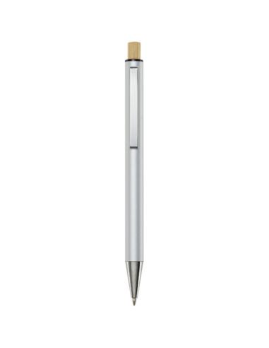 El bolígrafo "Cyrus" está fabricado con aluminio reciclado, que requiere menos energía que la producción de aluminio a partir de materias primas. También disminuye la cantidad de residuos en los vertederos y ayuda a conservar los recursos naturales con el objetivo de reducir las emisiones de gases de efecto invernadero. El pulsador está hecho de bambú. Color de la tinta: Azul. Longitud de escritura: 800 metros. Tamaño de la punta: 1,00 mm.