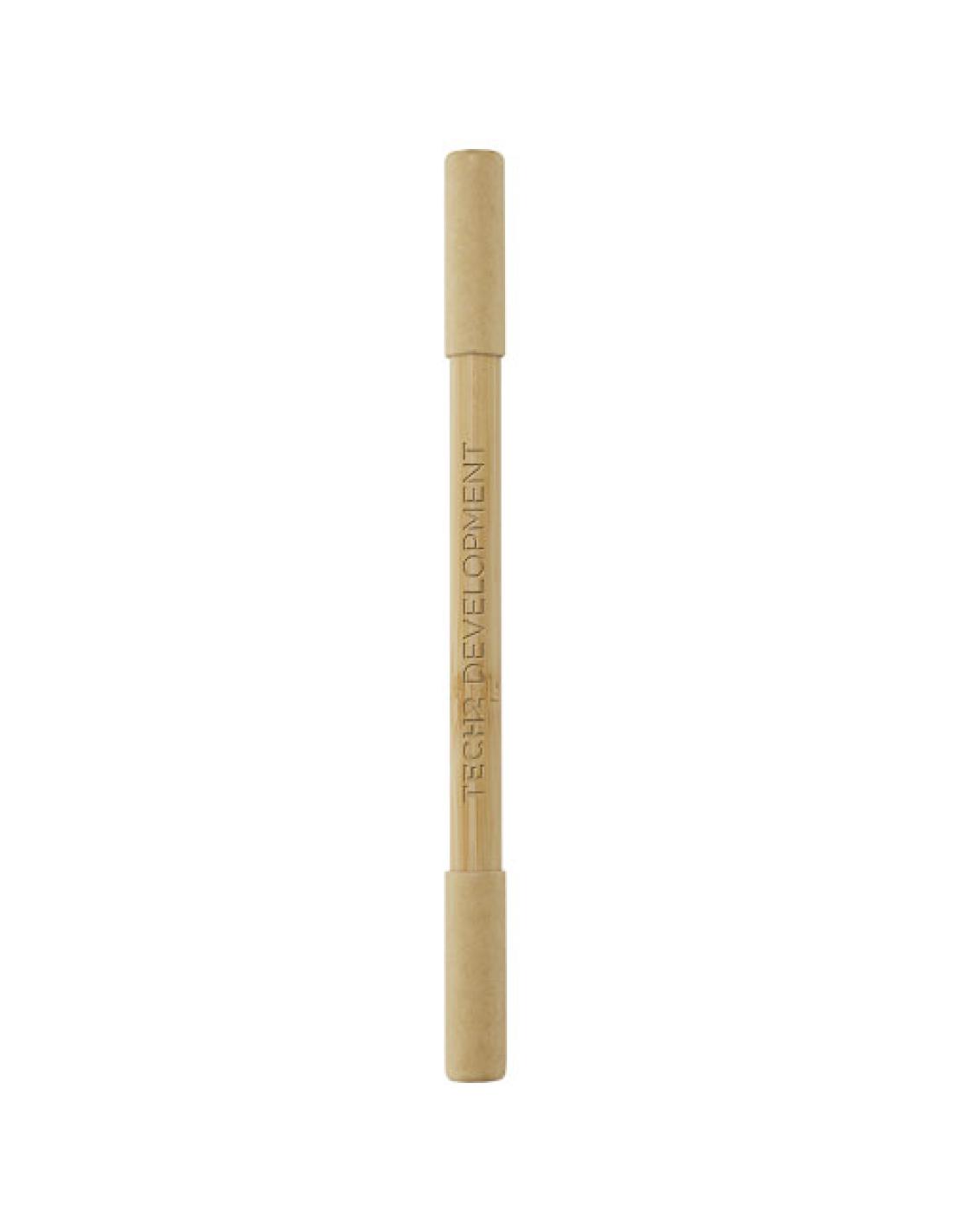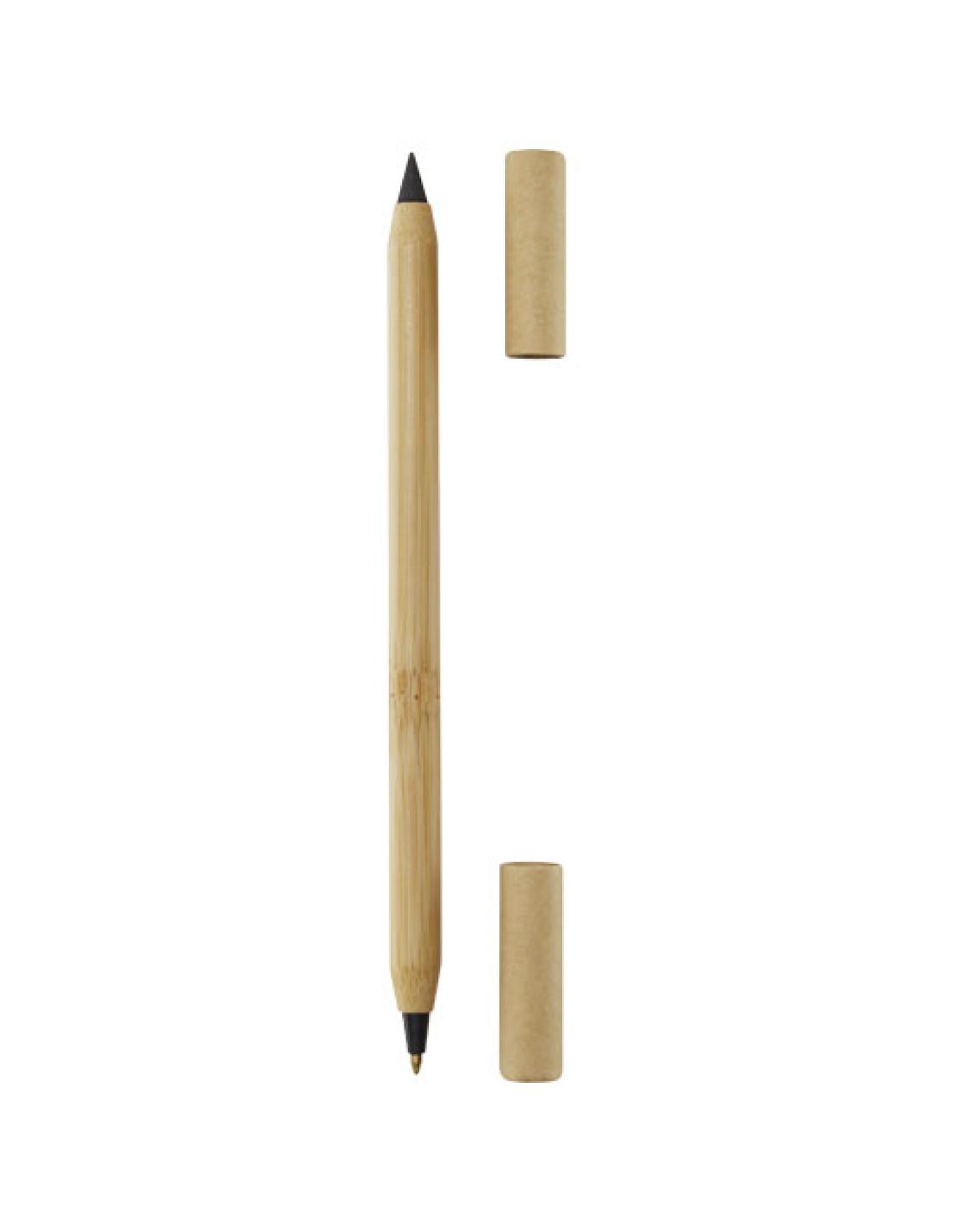 El bolígrafo doble "Samambu" de bambú tiene dos puntas: 1 bolígrafo con tinta y 1 bolígrafo sin tinta. La punta sin tinta no requiere cartuchos de tinta ni recambios. La punta de grafito negro del bolígrafo se ha diseñado para dejar un rastro visible al entrar en contacto con la superficie de escritura. Elegir un bolígrafo de bambú promueve la toma de decisiones más sostenibles y fomenta el uso de materiales renovables. El bolígrafo tiene tinta azul, un tamaño de la punta de 1,00 mm y una longitud de escritura de 600 metros. Longitud de escritura del bolígrafo sin tinta: 1500 metros.