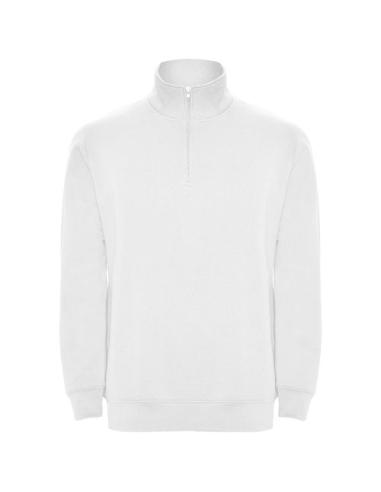 Sudadera con media cremallera a juego y cuello alto. Cuello interior en el mismo tono. Cubrecosturas reforzado en el interior del cuello. Punto canalé 1x1 en puños y cintura. El modelo mide 185 cms y lleva la talla M.