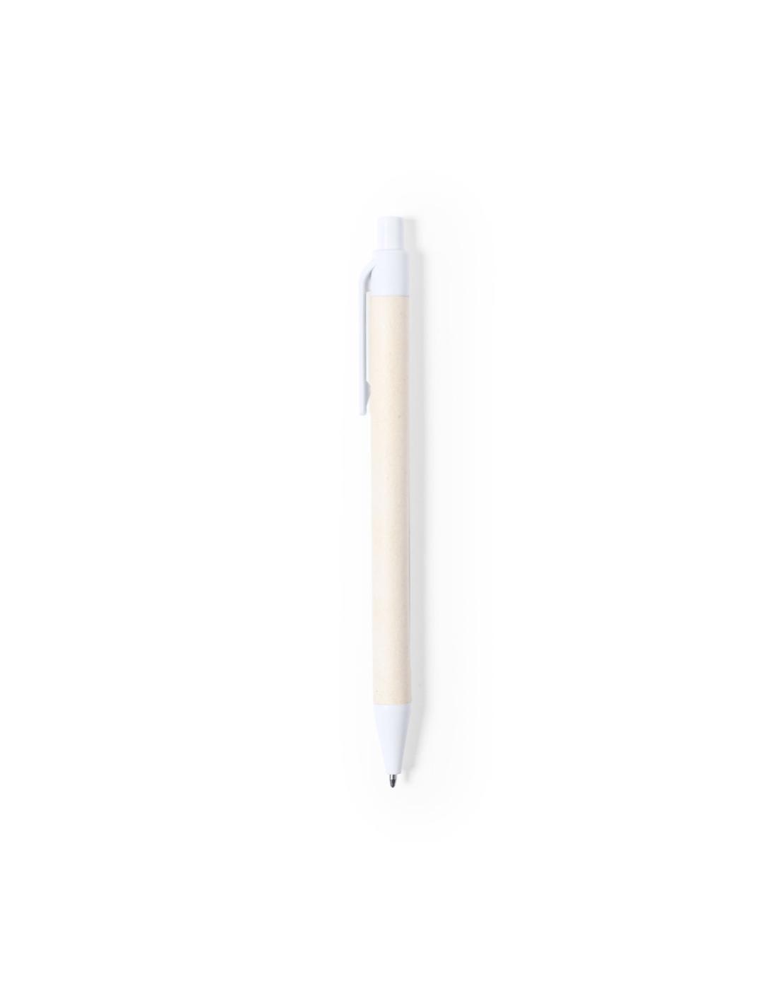 Bolígrafo de línea nature, con cuerpo fabricado con cartones de leche reciclados y detalles en color blanco. De mecanismo pulsador y en tinta azul, con distintivo cartón de leche reciclado en el cuerpo. Los cartones de leche se componen en su mayor parte de cartón y aluminio. Durante su proceso de reciclado, se separan los distintos materiales del envase para su reutilización y nuevo uso, contribuyendo así a recorrer el camino infinito de la economía circular. Este material se caracteriza por su alto grado de reciclabilidad, así como por su ligereza y resistencia.