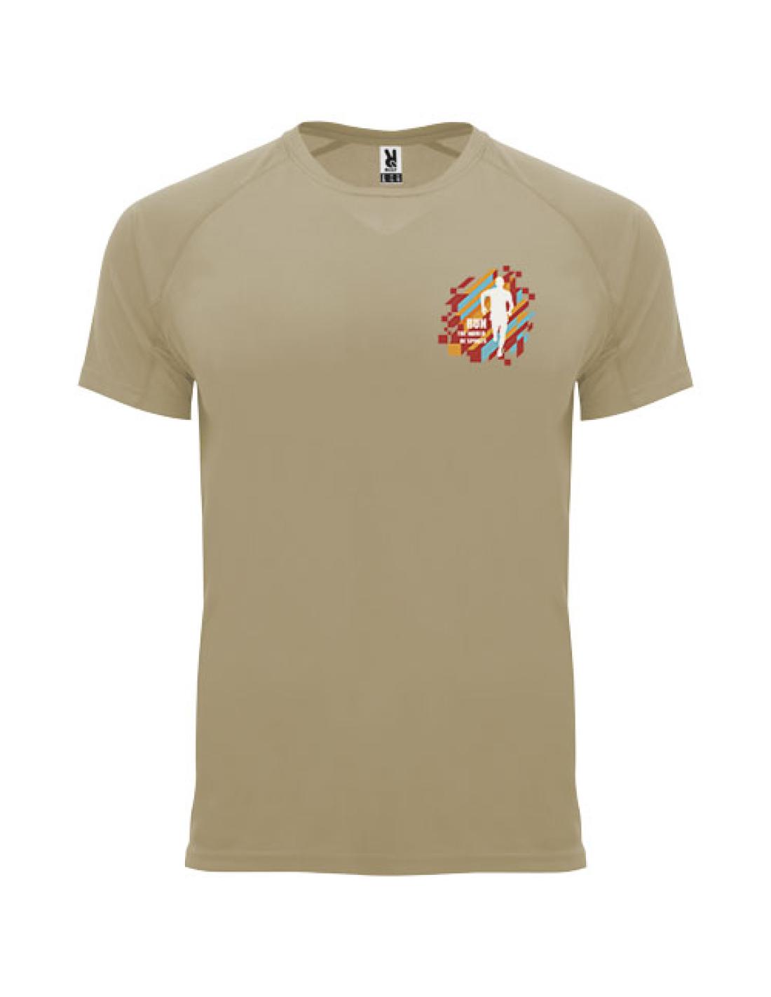 Camiseta técnica de manga corta ranglán. Cuello redondo con cubrecosturas a juego. Paneles inferiores en mangas. Remallado a tono en sisa y panel de manga. Tejido CONTROL DRY. Etiqueta extraíble. Tejido técnico. El modelo mide 180 cms y lleva la talla M.