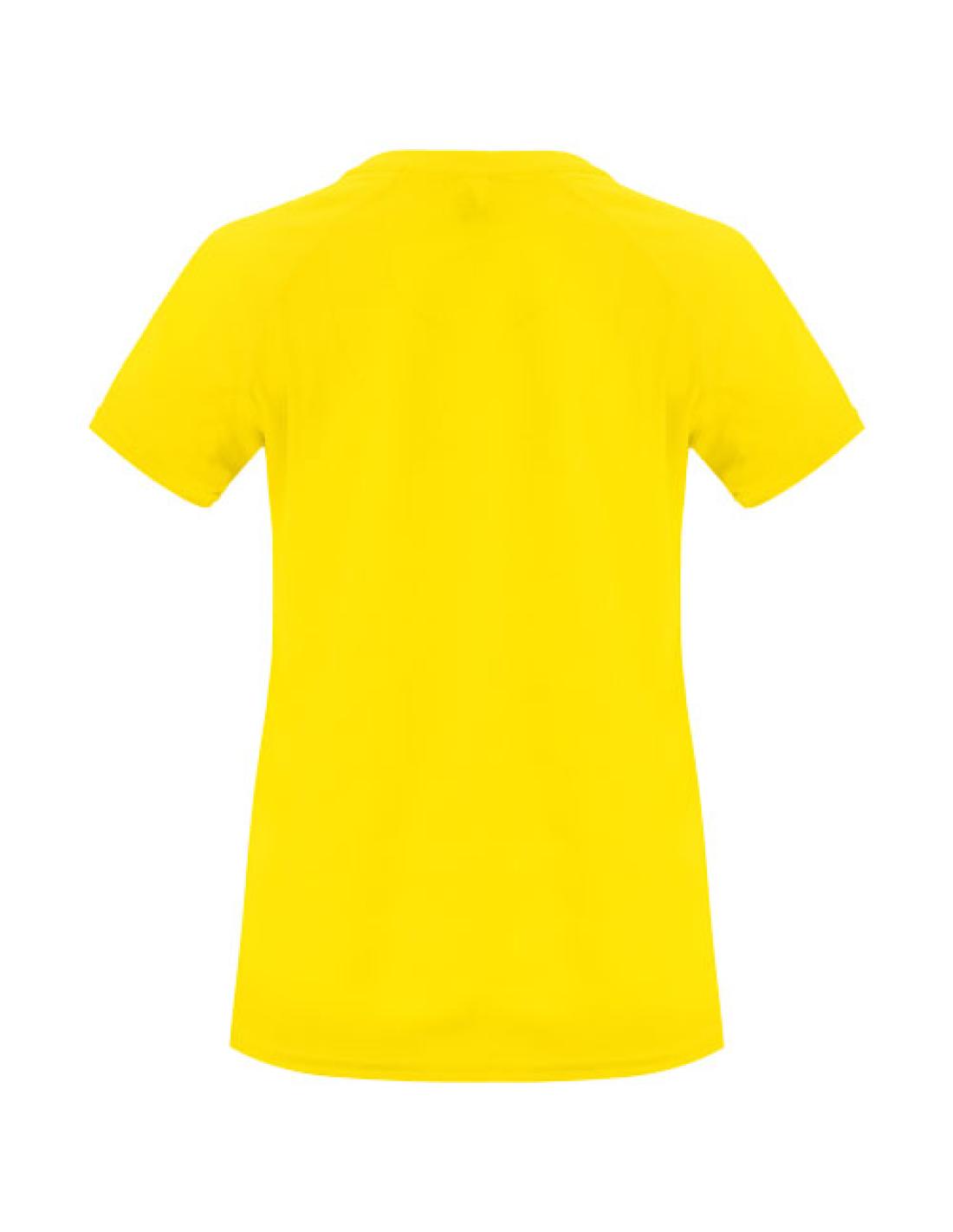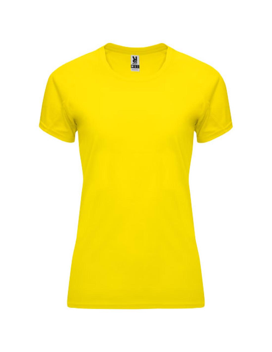 Camiseta técnica entallada de manga corta ranglán para mujer, con cuello redondo y cubrecosturas a juego. Paneles en mangas. Remallado a tono en sisa y panel de manga. Tejido CONTROL DRY. Etiqueta extraíble. Tejido técnico. Factor de protección UV. La modelo mide 173 cms y lleva la talla S.