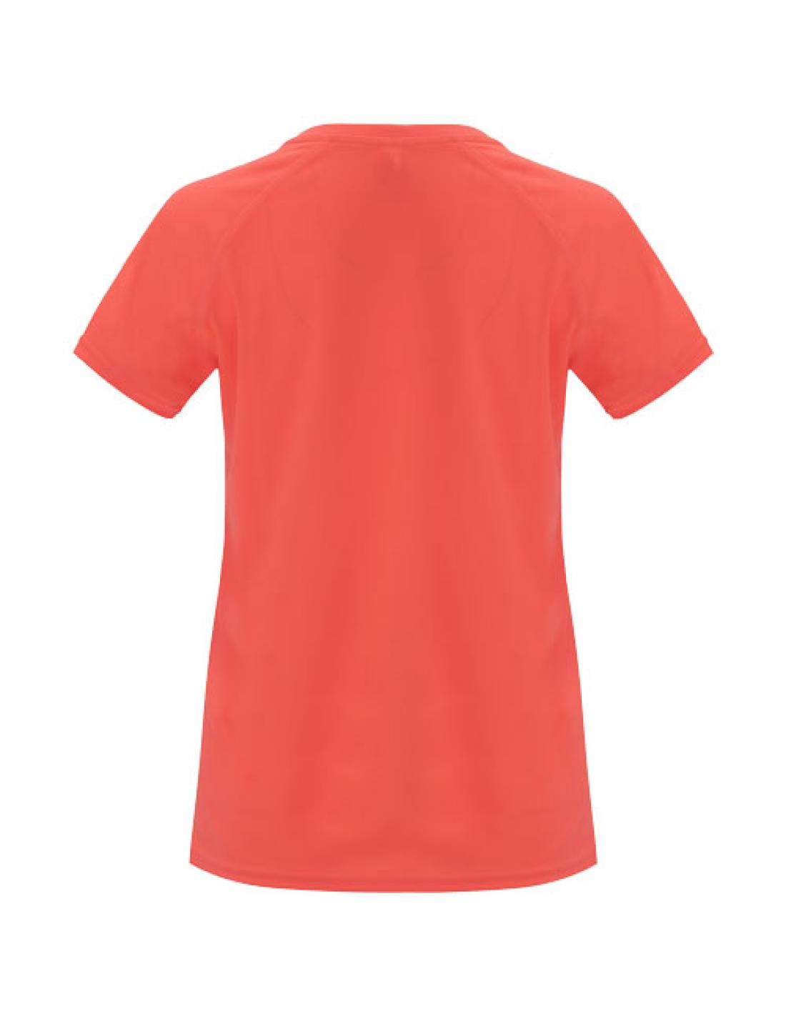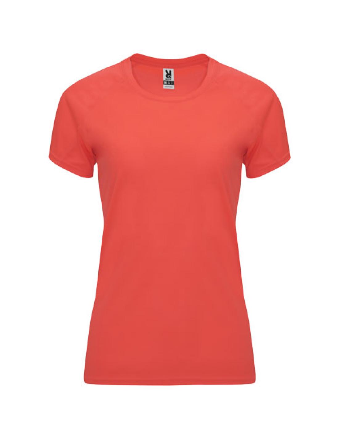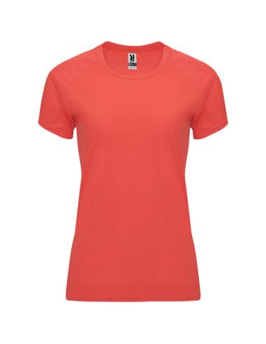 Camiseta técnica entallada de manga corta ranglán para mujer, con cuello redondo y cubrecosturas a juego. Paneles en mangas. Remallado a tono en sisa y panel de manga. Tejido CONTROL DRY. Etiqueta extraíble. Tejido técnico. Factor de protección UV. La modelo mide 173 cms y lleva la talla S.
