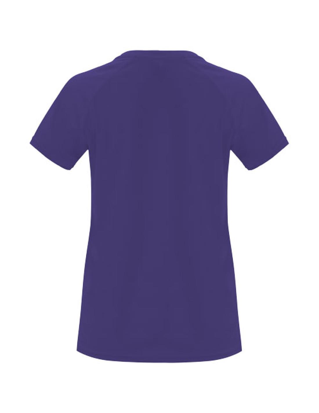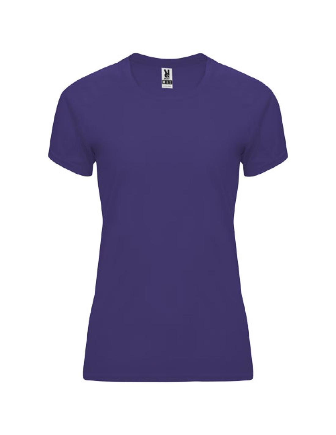 Camiseta técnica entallada de manga corta ranglán para mujer, con cuello redondo y cubrecosturas a juego. Paneles en mangas. Remallado a tono en sisa y panel de manga. Tejido CONTROL DRY. Etiqueta extraíble. Tejido técnico. Factor de protección UV. La modelo mide 173 cms y lleva la talla S.