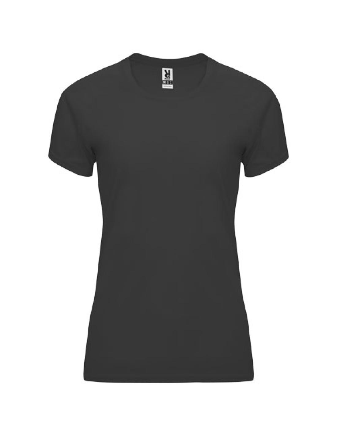 Camiseta técnica entallada de manga corta ranglán para mujer, con cuello redondo y cubrecosturas a juego. Paneles en mangas. Remallado a tono en sisa y panel de manga. Tejido CONTROL DRY. Etiqueta extraíble. Tejido técnico. Factor de protección UV. La modelo mide 173 cms y lleva la talla S.