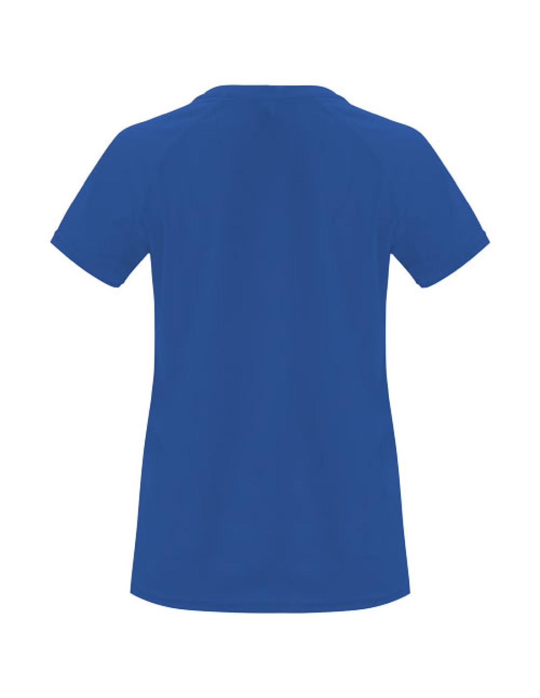 Camiseta técnica entallada de manga corta ranglán para mujer, con cuello redondo y cubrecosturas a juego. Paneles en mangas. Remallado a tono en sisa y panel de manga. Tejido CONTROL DRY. Etiqueta extraíble. Tejido técnico. Factor de protección UV. La modelo mide 173 cms y lleva la talla S.