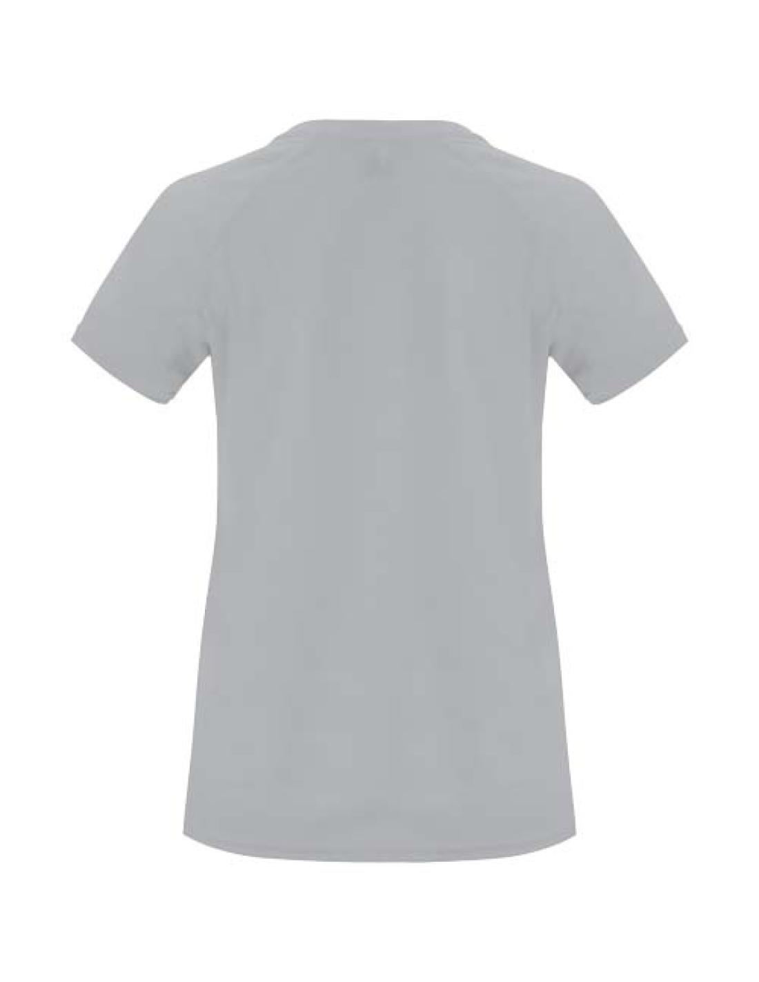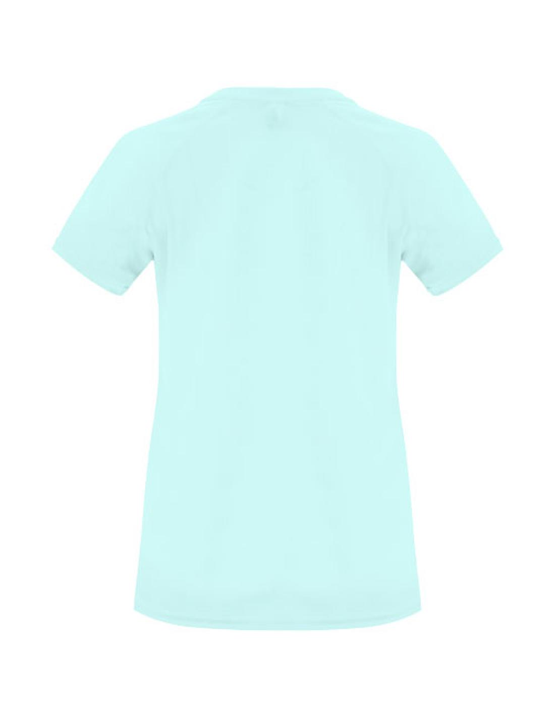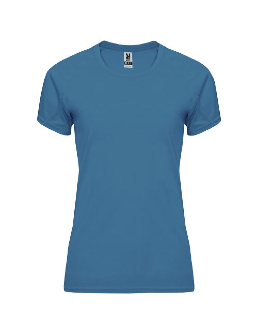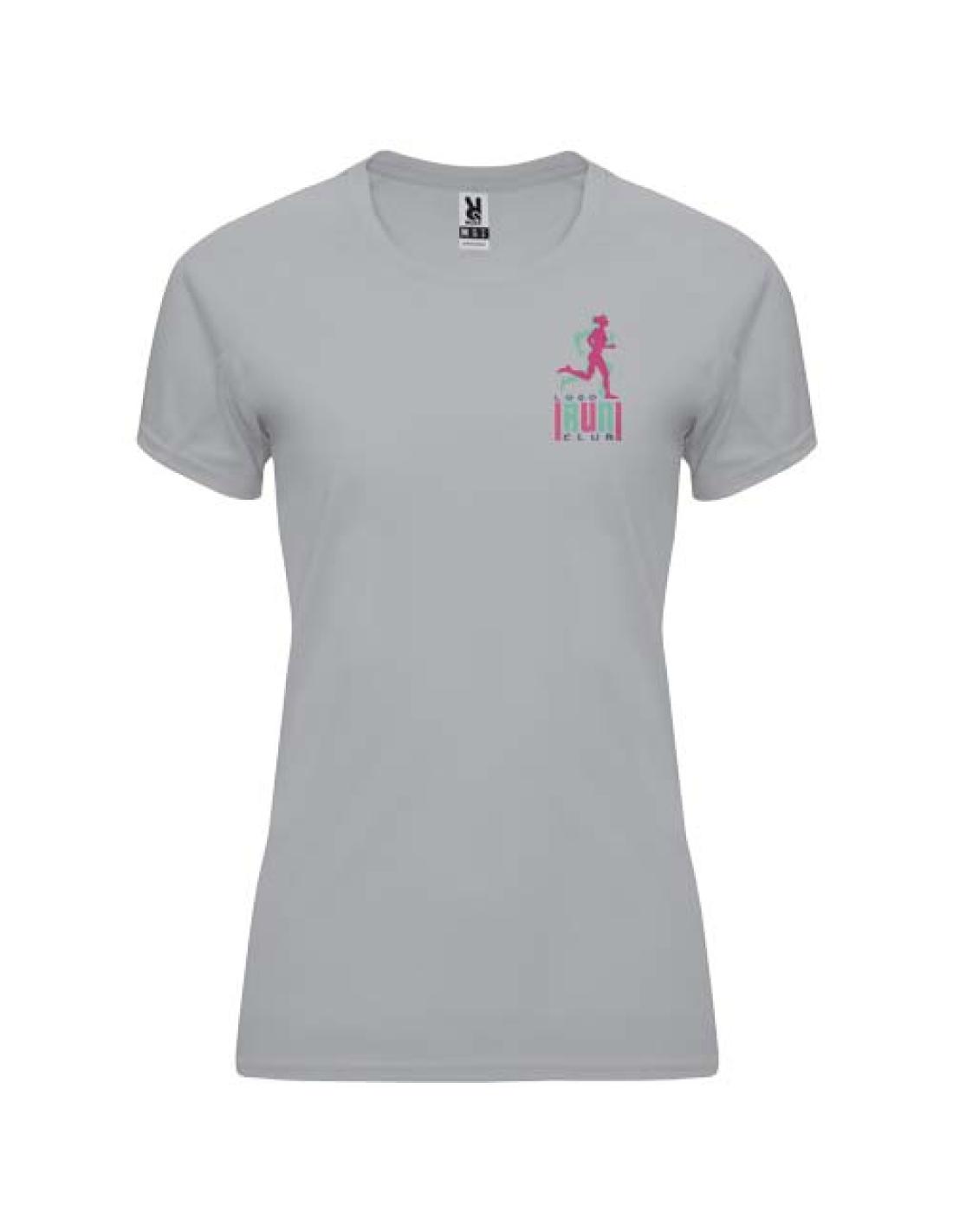 Camiseta técnica entallada de manga corta ranglán para mujer, con cuello redondo y cubrecosturas a juego. Paneles en mangas. Remallado a tono en sisa y panel de manga. Tejido CONTROL DRY. Etiqueta extraíble. Tejido técnico. Factor de protección UV. La modelo mide 173 cms y lleva la talla S.