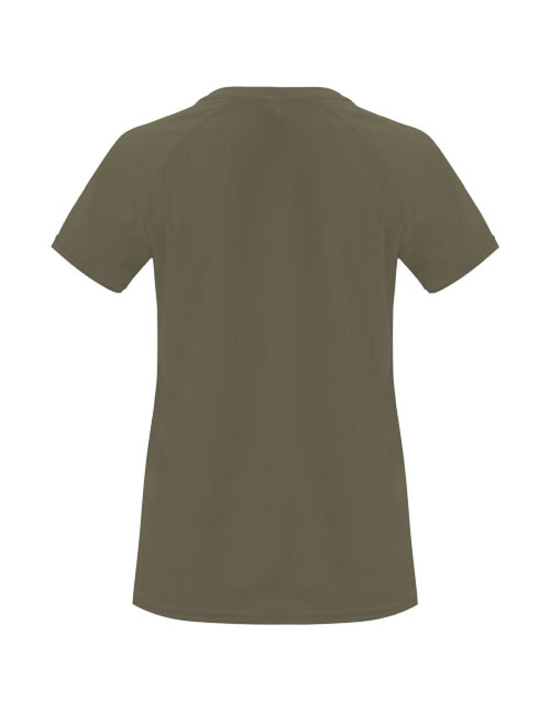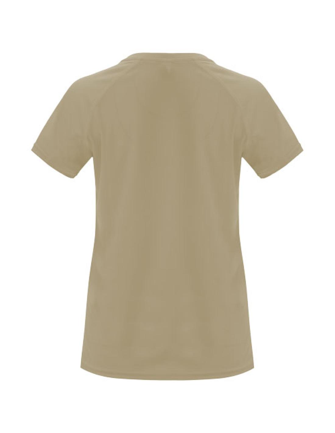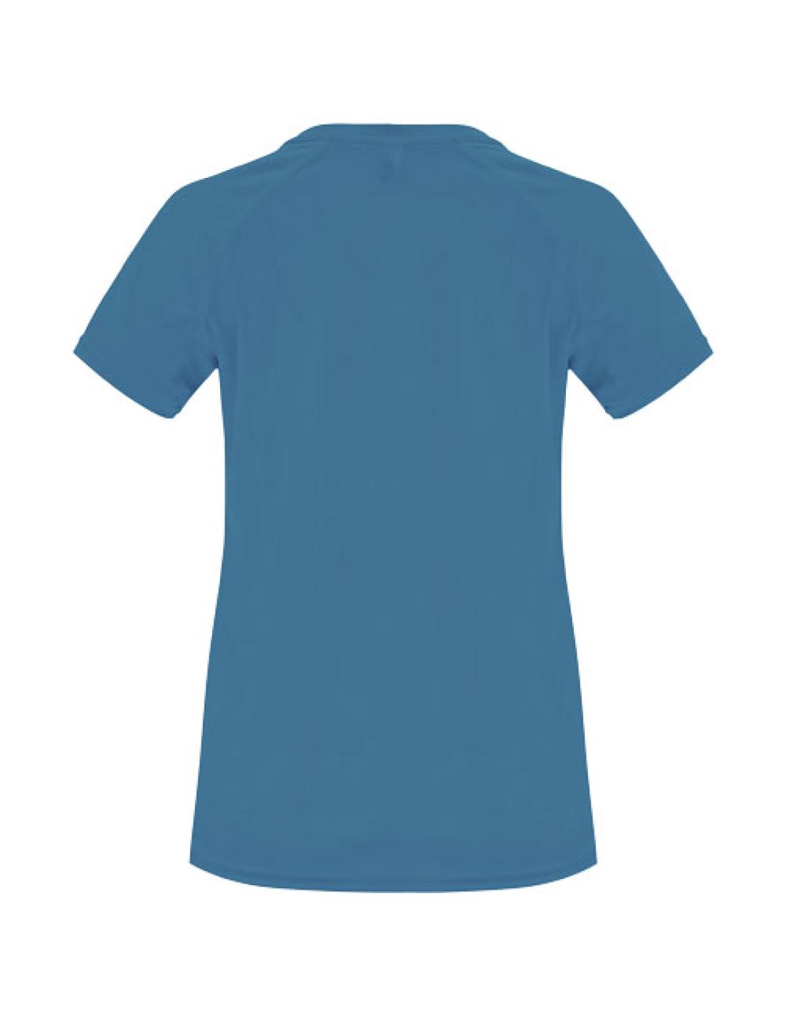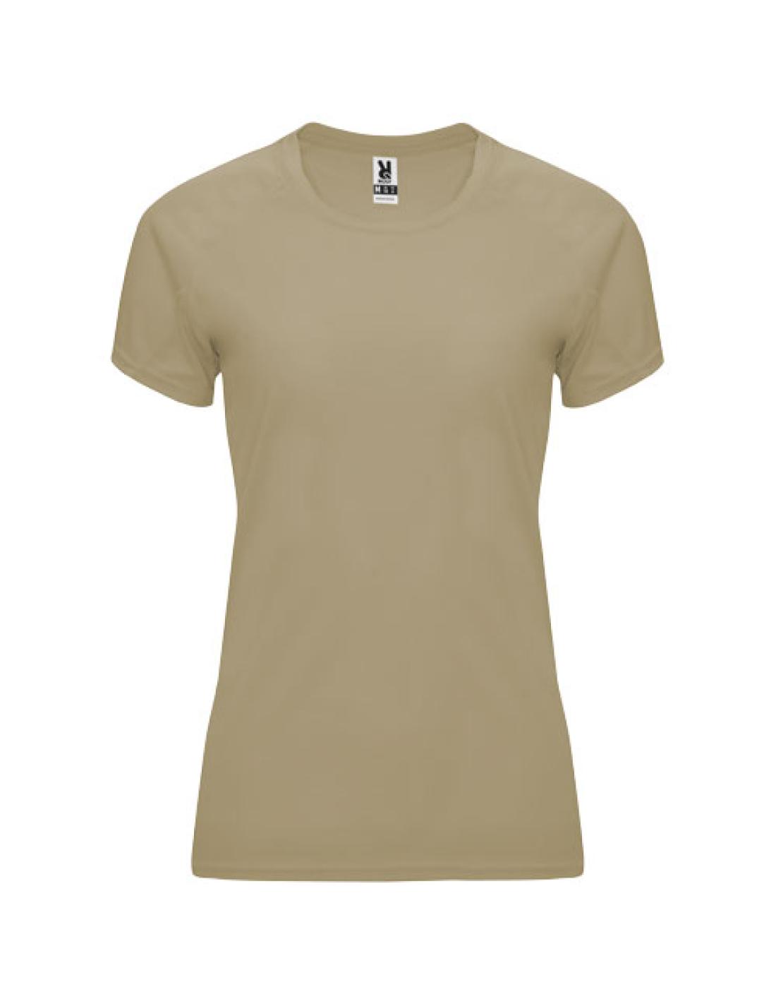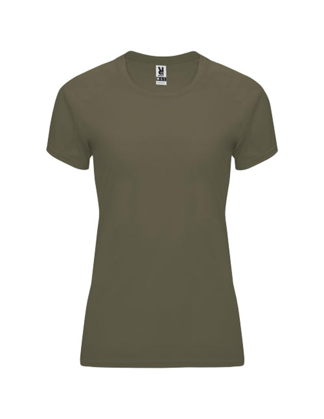 Camiseta técnica entallada de manga corta ranglán para mujer, con cuello redondo y cubrecosturas a juego. Paneles en mangas. Remallado a tono en sisa y panel de manga. Tejido CONTROL DRY. Etiqueta extraíble. Tejido técnico. Factor de protección UV. La modelo mide 173 cms y lleva la talla S.